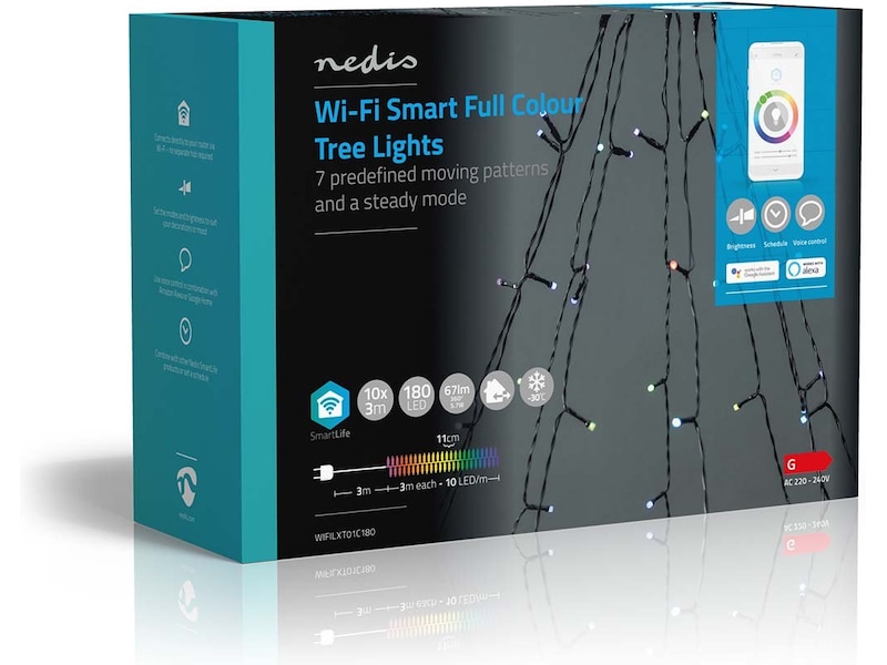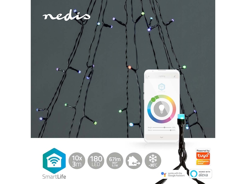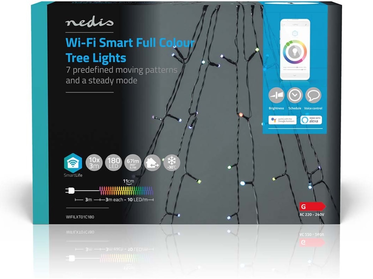 Smart Wi-Fi-lyskæden kan installeres uden en gateway og integreres direkte i dit trådløse netværk – dette forenkler installationen og sparer yderligere omkostninger. Betjen lysene ved hjælp af den gratis Nedis® SmartLife-app, hvor du kan oprette automatiserede funktioner baseret på tidsindstillede tidsplaner, solnedgang eller andre Nedis® SmartLife-produkter. I kombination med Google Home eller Amazon Alexa kan du endda give stemmekommandoer for at ændre træets mønstre.