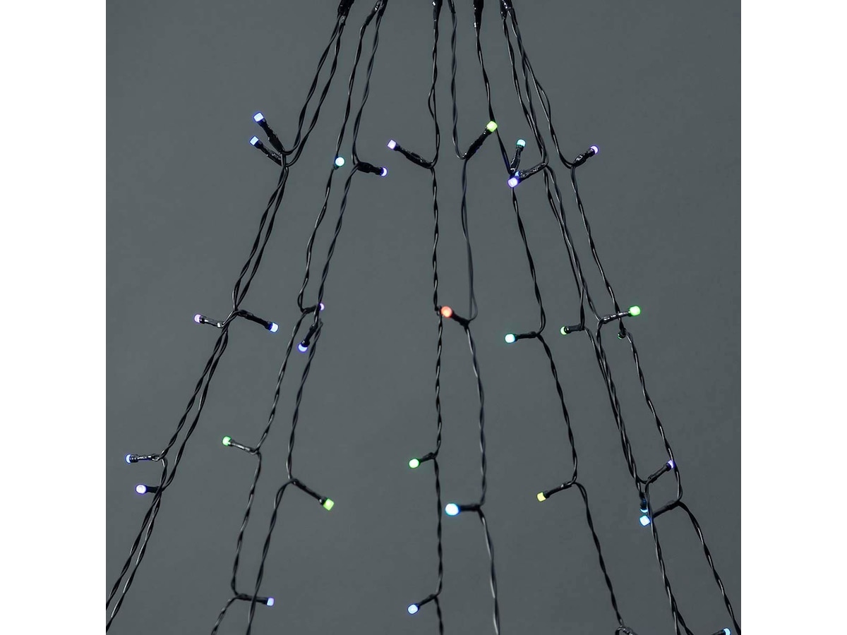 Kablets sorte farve passer fint på alle slags baggrunde uden at forstyrre optikken. Den 10 x 2 meter lange kæde har i alt 180 LED-lys, der sidder 15 centimeter fra hinanden. En samlet længde på 3 meter sikrer, at ledningen er lang nok. Meget praktisk, hvis din stikkontakt er lidt længere væk. Træet kan bruges udendørs.