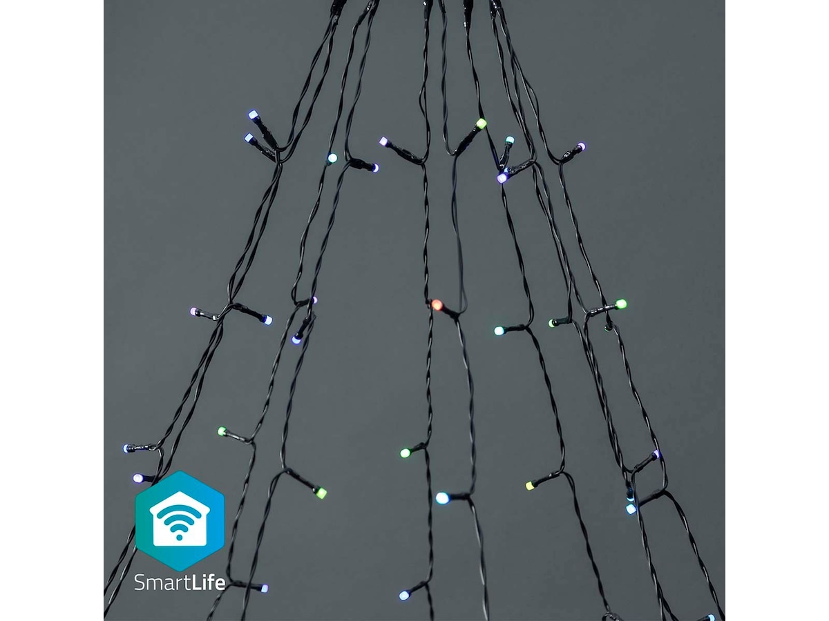 Dette brugervenlige Nedis® Smart Wi-Fi-træ med flerfarvede LED'er til ophængning har 10 kæder på 2 meter og er specielt lavet til at hænge på flagstænger, pergolaer eller terrasser.