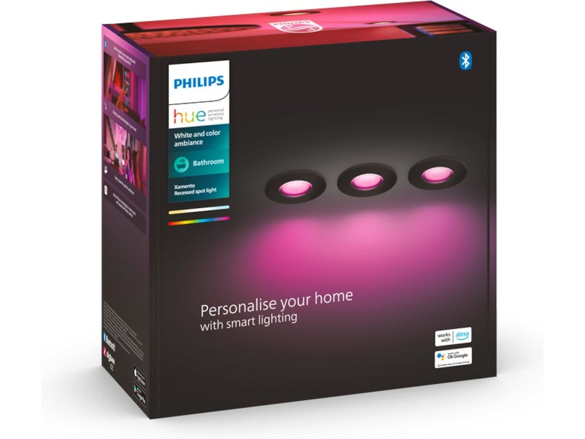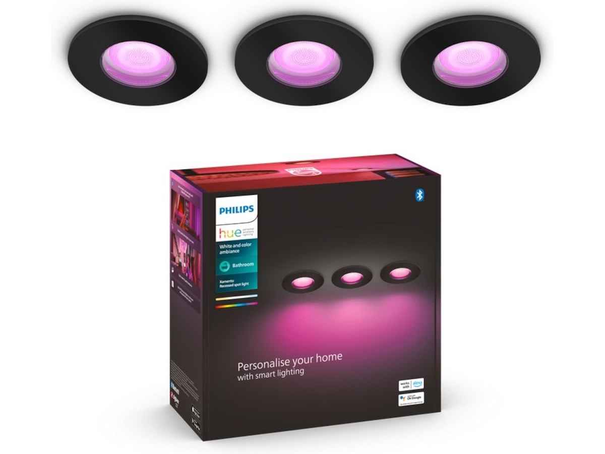 Denne runde indbygningsspot i sort har et diskret og moderne design, der passer naturlig ind i ethvert hjem. Det justerbare hoved gør det nemt at vinkle lyset I den ønskede retning for at oplyse f.eks. skabe og nips. Med White and color ambiance er det muligt at tilpasse din belysning til alle daglige rutiner og enhver særlig anledning. Vælg mellem 16 millioner farver og tilpas lysets styrke, temperatur og nuance. Brug forskellige lysscener til at forvandle dit badeværelse til en luksuriøs spa, når du skal nyde et karbad på en afslappet søndag, og lad lystemaet fra en tropisk ø hjælpe dig med at koble af efter en lang arbejdsdag. At have den rette belysning er især vigtigt i de skiftende og mørke årstider, vi oplever i Norden. Brug farvet lys til at skabe den helt rigtige stemning, vælg koldt hvidt lys til at give dig energi på en mørk vintermorgen og indstil en varm, gylden tone til dine aftenrutiner på badeværelset inden sengetid. Xamento er IP44-klassicificeret, hvilket gør den sikret mod vandstænk. Dette er en 3-pak.