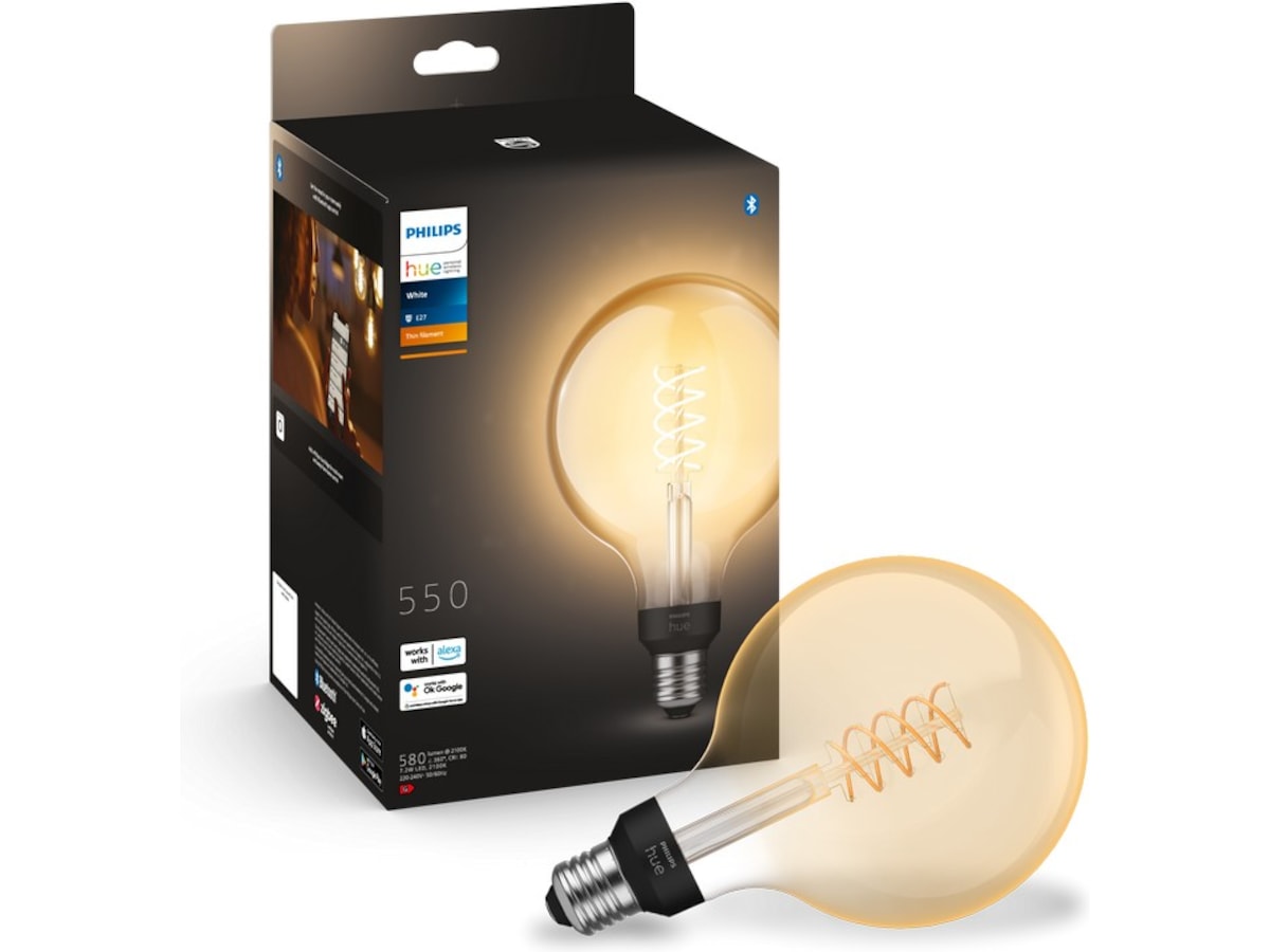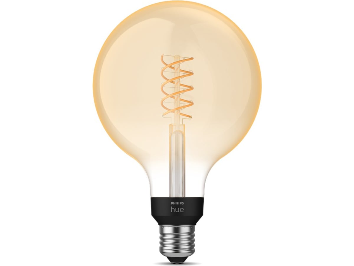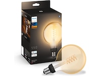 Med et snoet filament, der er synlig igennem det transparente glas, kombinerer filamentpærerne moderne funktioner med et både stilrent og elegant vintage udtryk. Denne G125 Globe pære har en stor rund form, og den kan nemt fungere som den eneste lyskilde i hvilket som helst rum, hvor du ønsker at dekorere med både klassisk og tidløst design samt fantastisk stemningsbelysning. Du kan også samle flere filamenter og justere hver enkelt pæres belysning for at skabe den helt rette atmosfære, skræddersyet til dit hjem og dine behov. Som en del af White serien afgiver denne pære lys ved 2100 grader kelvin og giver dig mulighed for at dæmpe din belysning. Du kan nemt kontrollere og justere lyset via din Hue app og ethvert Hue tilbehør. Tilføjer du en Hue Bridge, får du adgang til endnu flere muligheder.