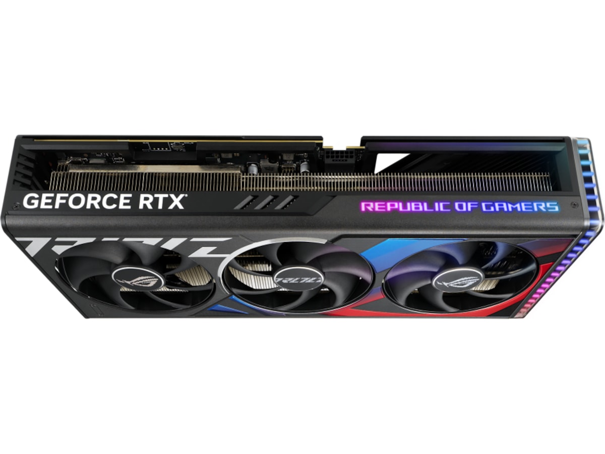 A vapor chamber featuring embedded heatpipes draws heat into a fin array spanning most of the card's 3.5-slot footprint, keeping the GPU and components ultra-cool.