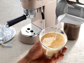 Den håndbetjente Dedica Arte-kaffemaskine tilføjer ekstra stil til det unikke og ikoniske Dedica-design. Kompakt og kraftfuld på samme tid er denne kaffemaskine det perfekte supplement til din køkkenbordplade, til fyldig morgenkaffe uden besvær, en silkeblød mikroskum-struktur til dine foretrukne mælkebaserede drikkevarer og ultimativ brugervenlighed og bekvemmelighed.