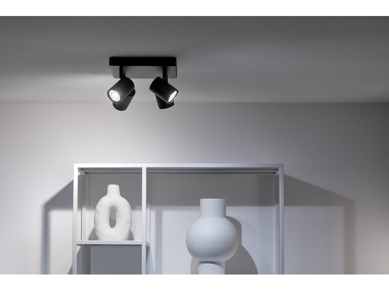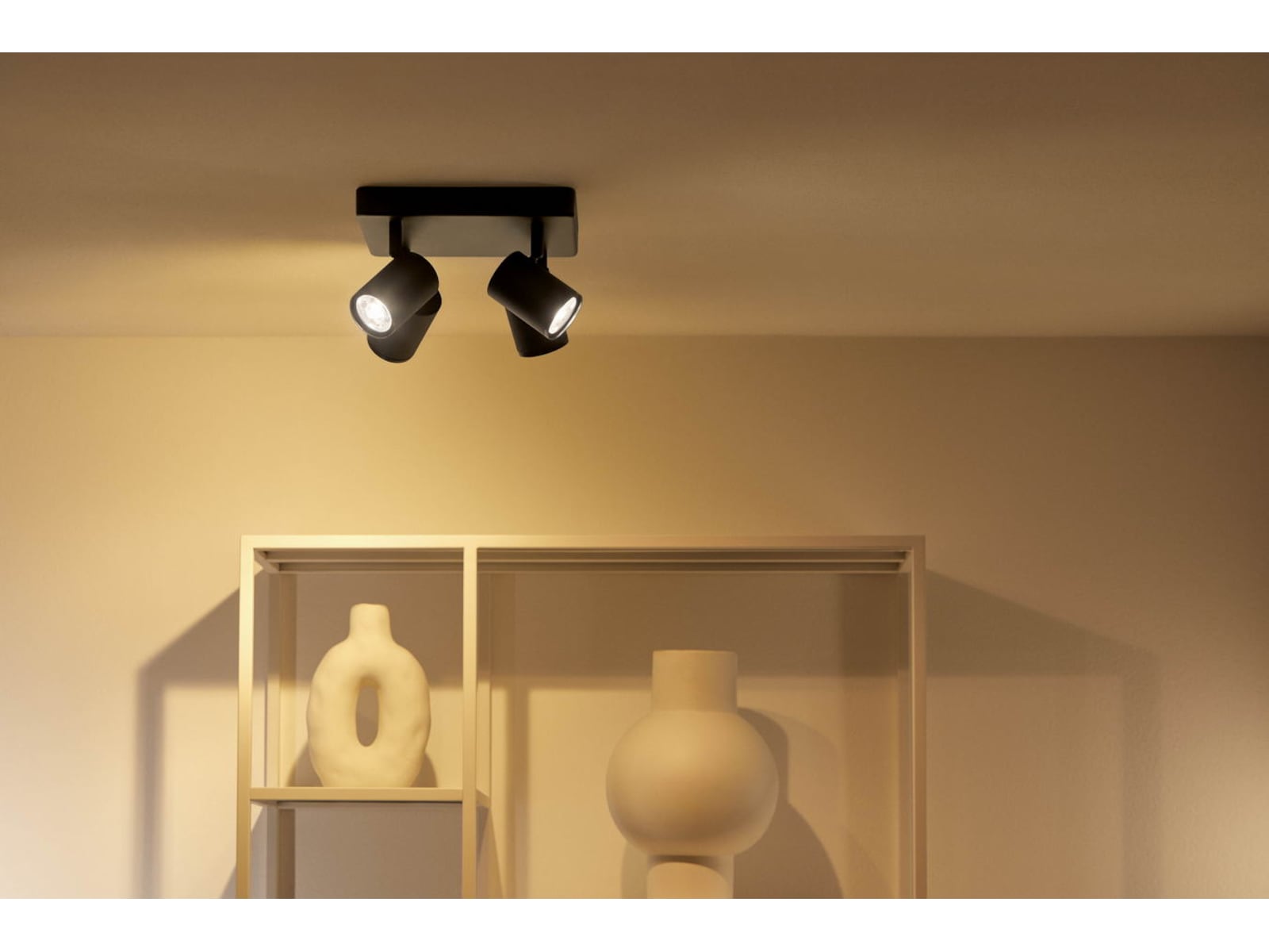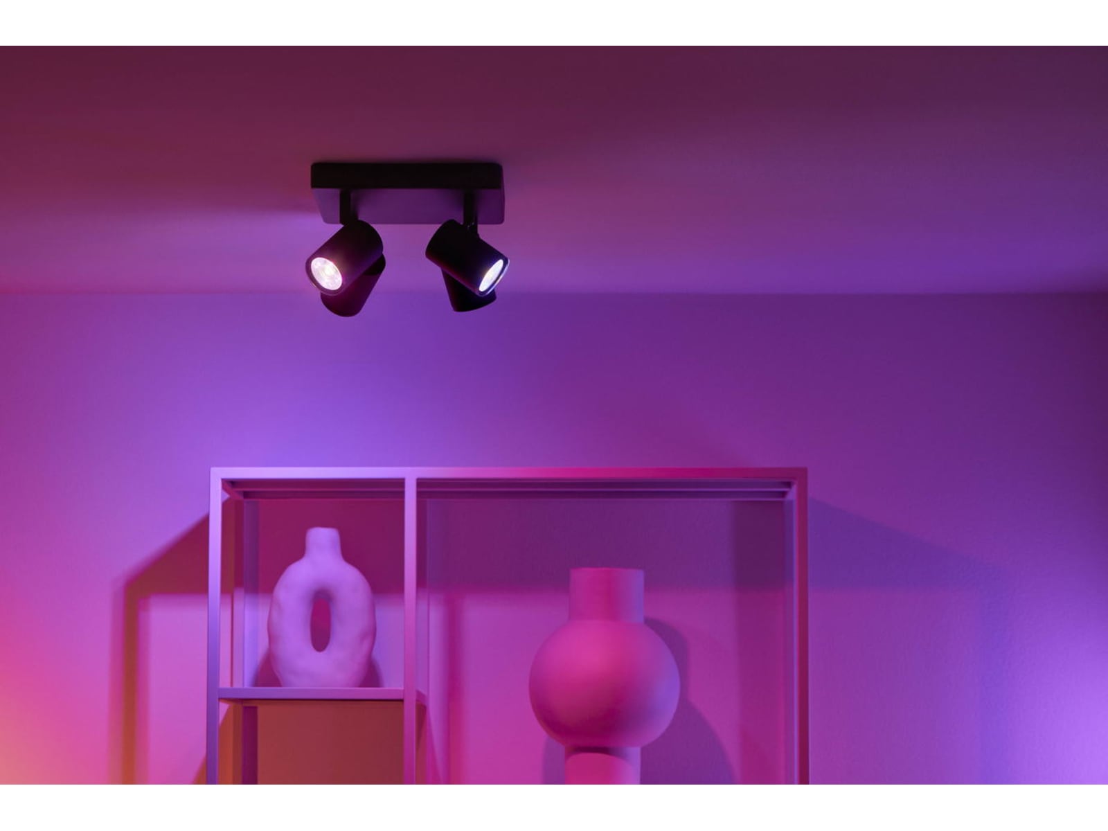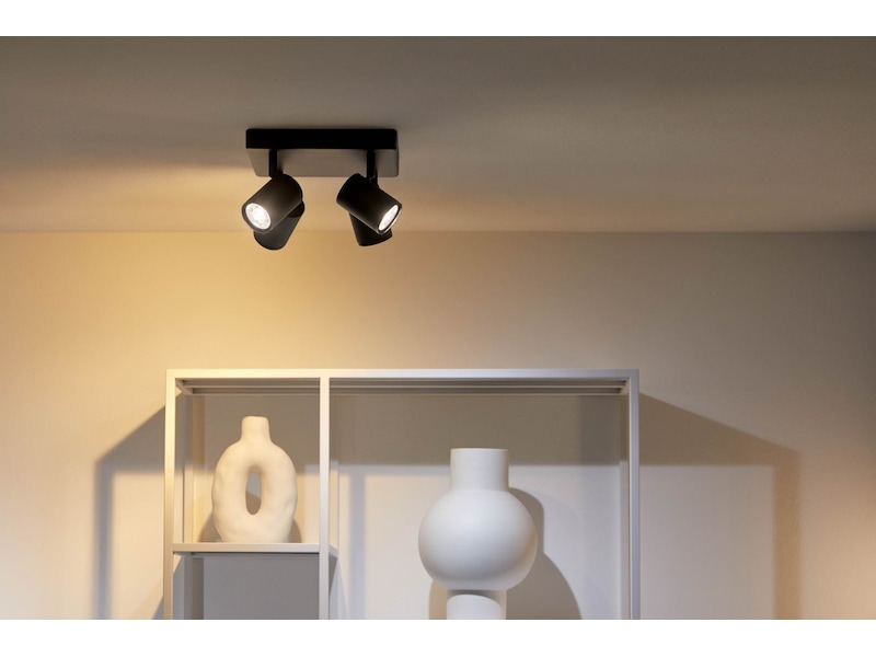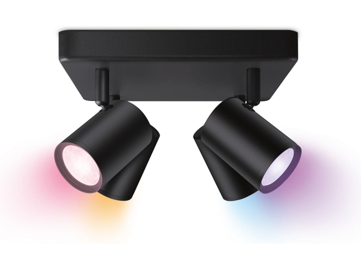 Med fire justerbare hoveder får du her en moderne lampe i hvid, der oplyser og fremhæver de områder og genstande, du holder allermest af. Dit hjem og dine øjne vil elske muligheden for at justere din belysning til 16 millioner forskellige farver og vælge lysets styrke og temperatur, så du endelig får LED-belysning i den høje kvalitet, du fortjener. Lad dig også imponere af komforten og glæden ved de dynamiske lysscener og unikke funktioner, der bader dit hjem i smukke, flerfarvede lyseffekter – der eksempelvis efterligner havets bølger eller en glødende pejs, eller som skaber en glidende overgang i din belysning ved at følge døgnets naturlige lysmønster.