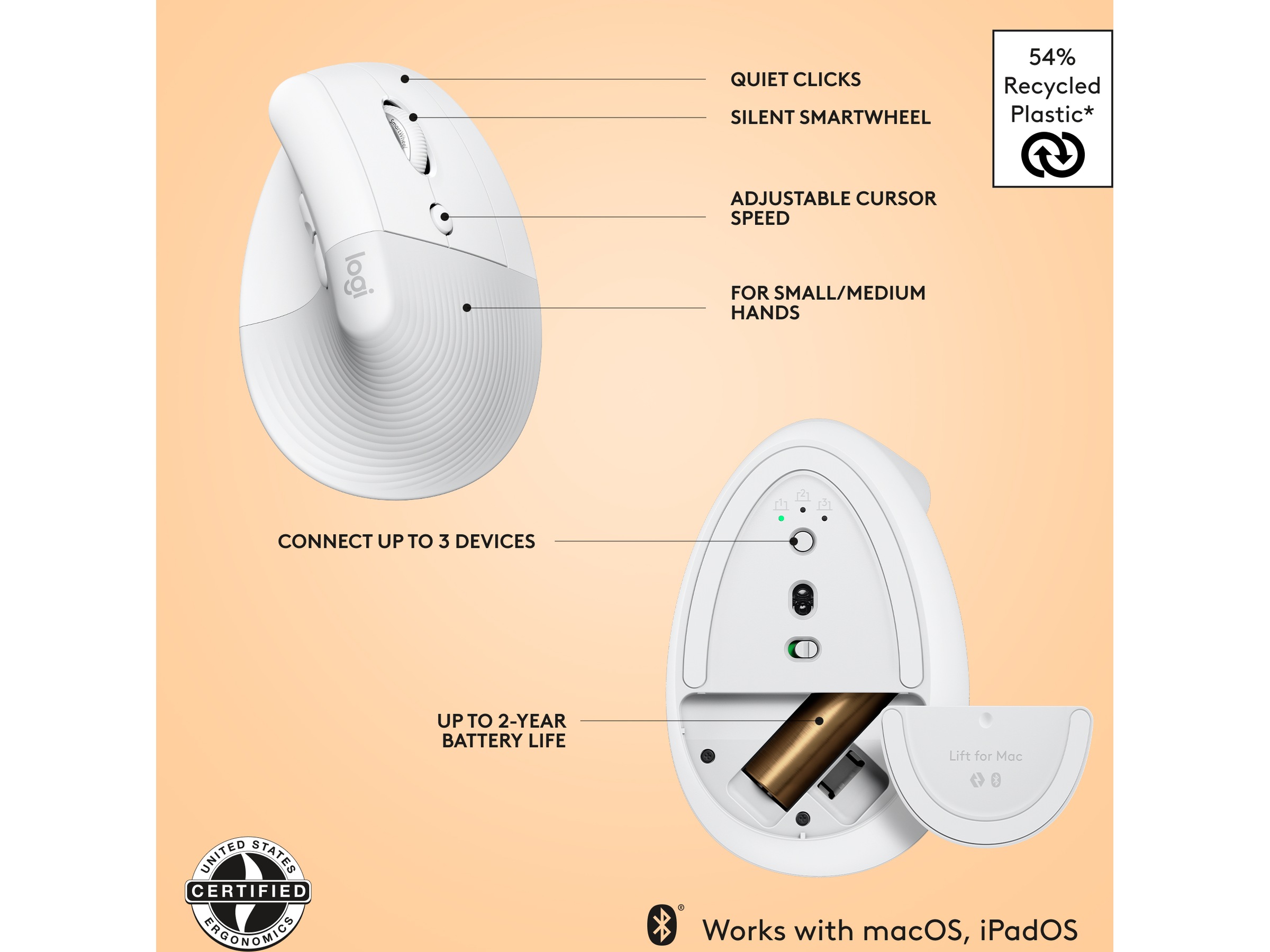 Logitech Lift for Mac Vertikal Trådløs Mus