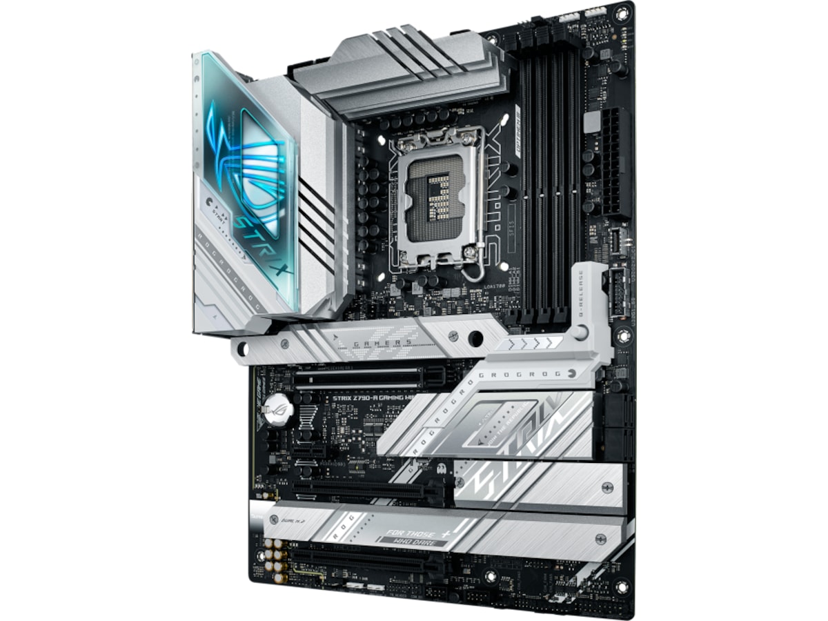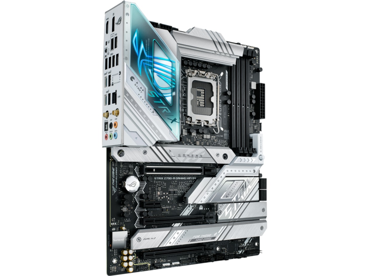 ROG Strix Z790-A gør sig bemærket med en afbalanceret stil, ydeevne, køling og tilslutninger, både indvendigt og udvendigt. En robust VRM med kraftige sølvfarvede køleplader giver uanstrengt strøm til de nyeste 13. generations Intel® Core-processorer. PCIe 5.0, WiFi 6E og højhastigheds-USB styrker kortets fleksibilitet på tværs af en række forskellige discipliner. Og en stor samling af indstillingsmuligheder og værktøjer, der stammer fra ROG-arven, er prikken over i'et.