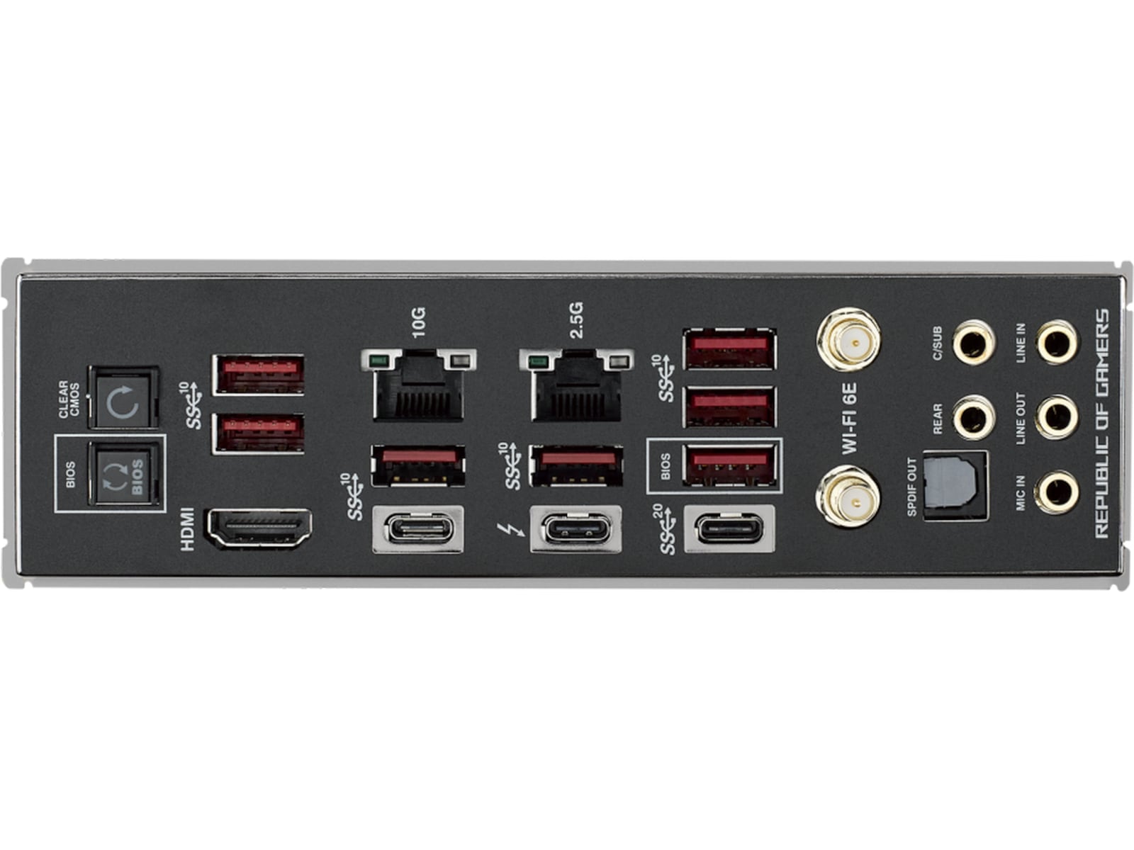 • Omfattende tilslutninger: Thunderbolt™ 4 USB Type-C®-port og frontpanelstik, USB 3.2 Gen 2x2 Type-C®-port og frontpanelstik med Quick Charge 4+ op til 60 W, otte ekstra USB 3.2 Gen 2-porte, to PCIe 5.0 x16 SafeSlots, HDMI® 2.1