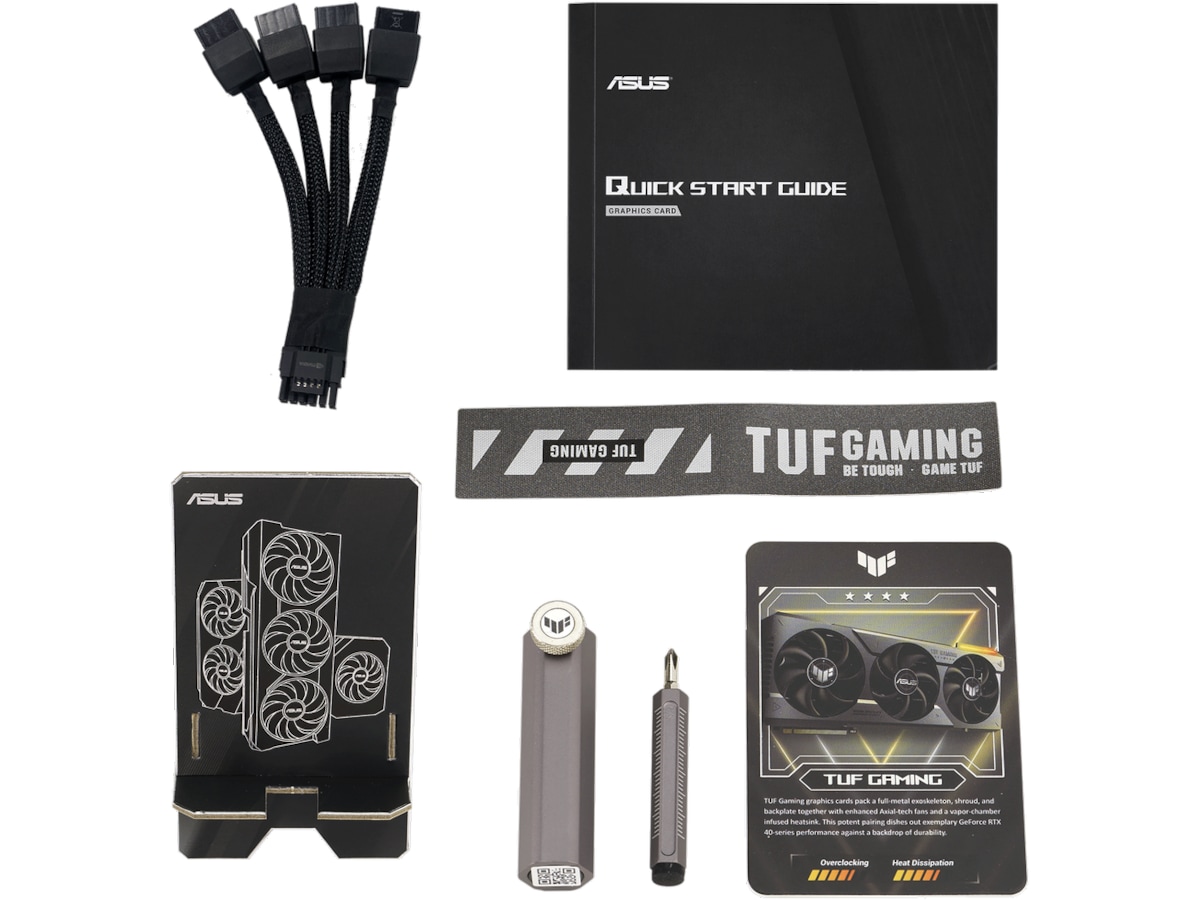 Den medfølgende grafikkortholder forhindrer fald og indeholder også en skruetrækker til at hjælpe dig med at bygge.