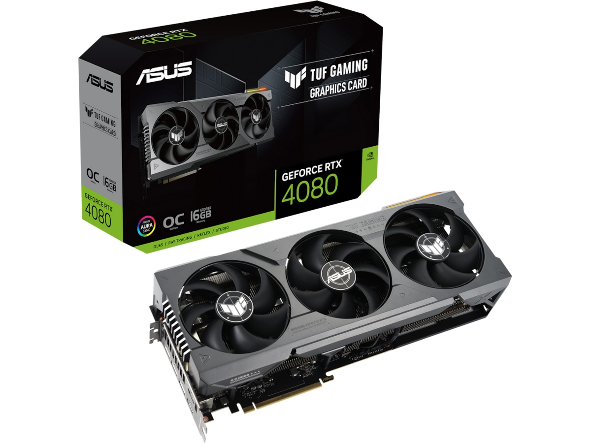 ASUS TUF Gaming GeForce RTX® 4080 16GB GDDR6X OC Edition optimeret inde og ude for lavere temperaturer og holdbarhed.