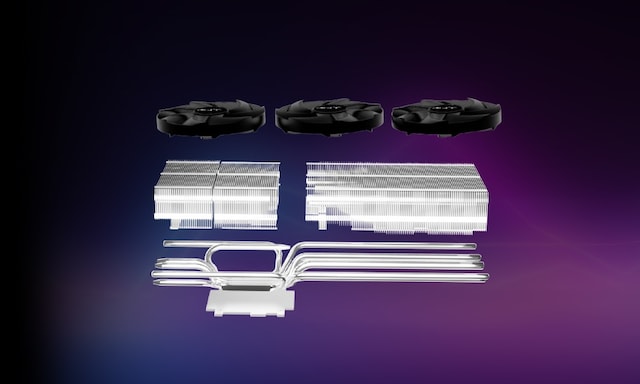 Lavet med runde blæsere med 3.100 mm dobbelte kuglelejer. Sammenlignet med traditionelle 90 mm blæsere, byder de på 40% mere luftstrøm og vinder 55% lufttryk. Derudover konvergerer det runde ventilatorblad luften for at forbedre den termiske ydeevne.