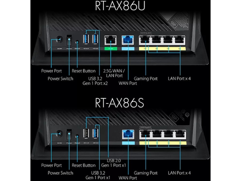 Nyd de hurtigste, mest glatte WiFi-gaming-forbindelser nogensinde med ASUS RT-AX86-seriens dual-band WiFi 6-router. Den leverer ultrahurtige WiFi-hastigheder på op til 5700 Mbps** og er fyldt med avanceret teknologi, herunder Mobile Game Mode til en forsinkelsesfri mobil spiloplevelse med lav latenstid.