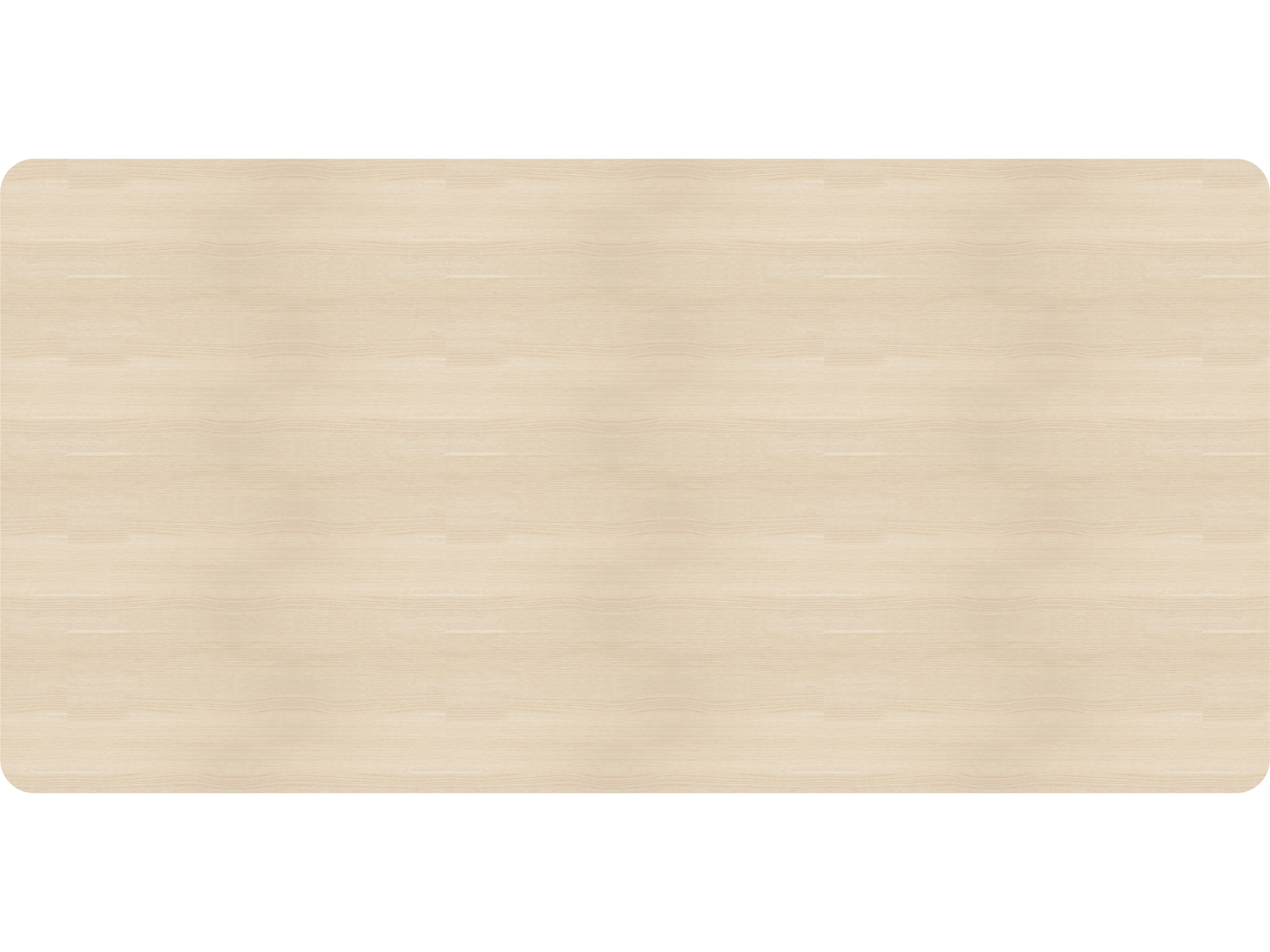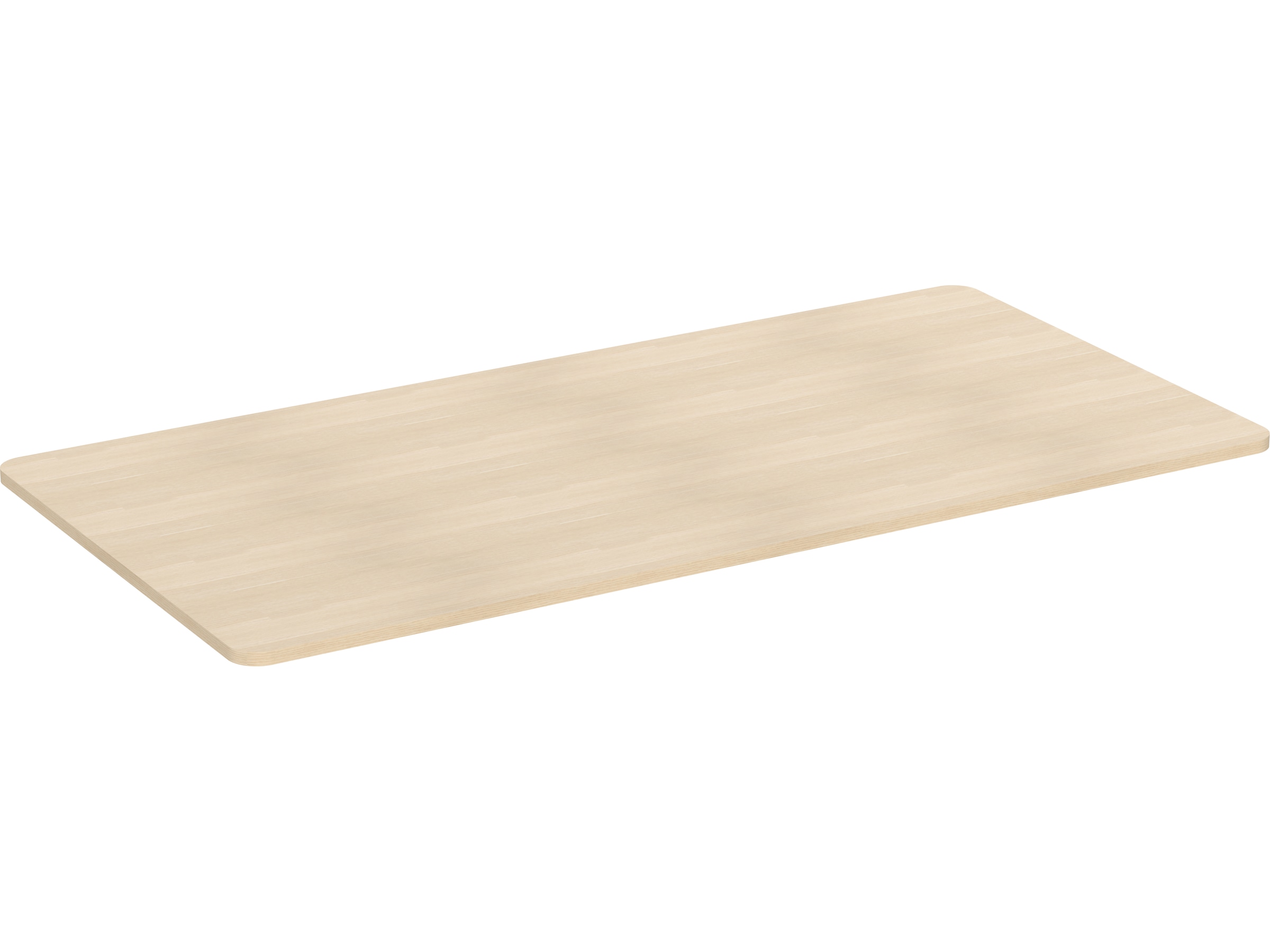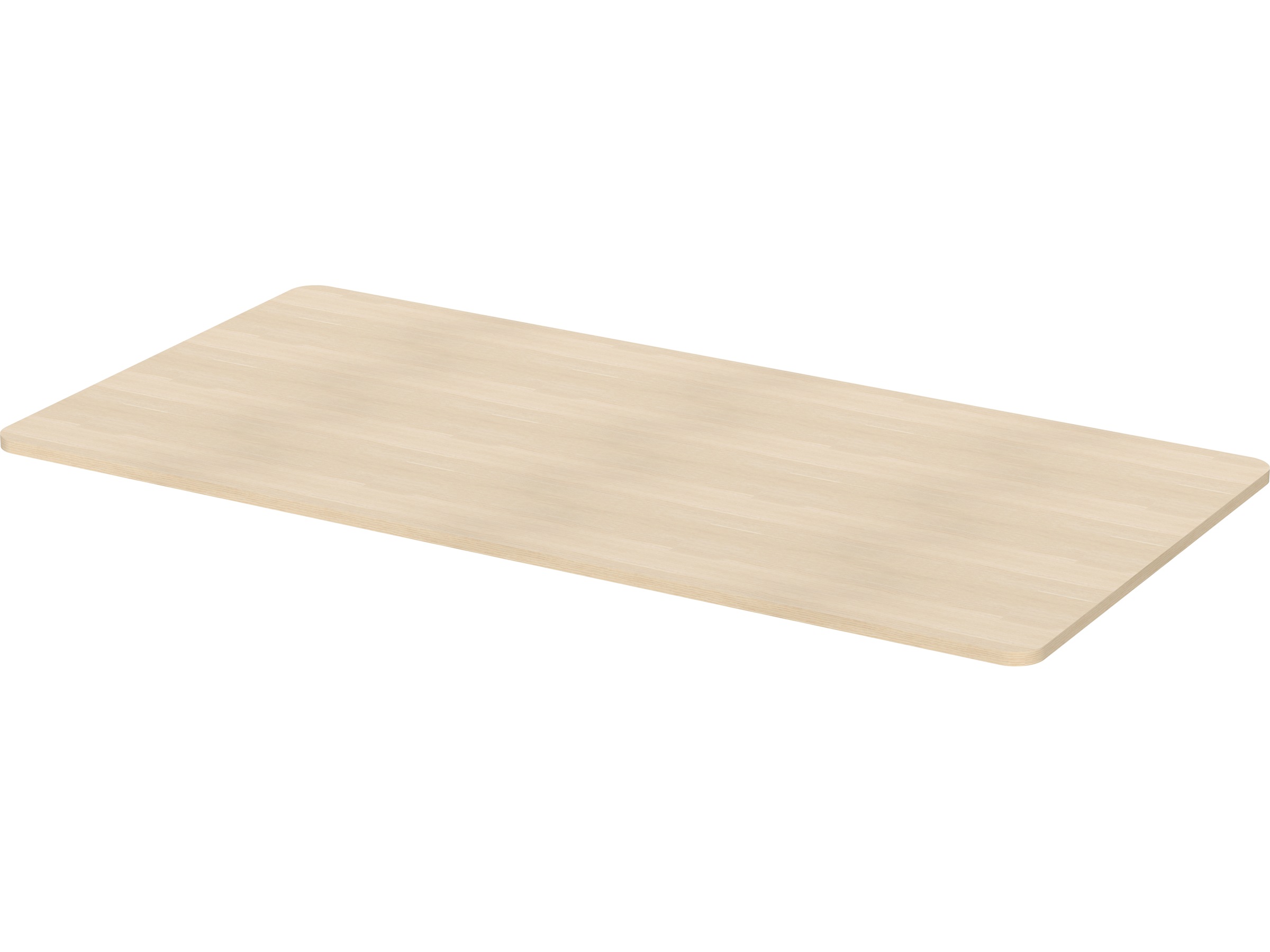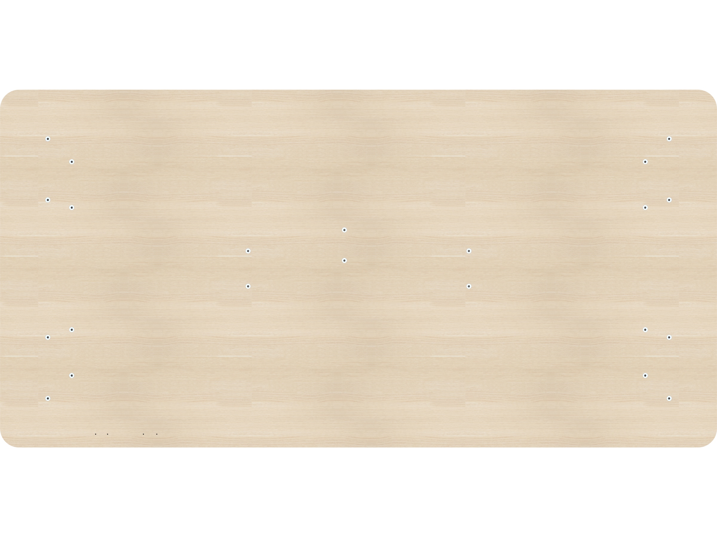 Bordplade med afrundede kanter og forborede skruehuller. Bordpladen er lavet af spånplade og har en lamineret overflade, der gør pladen slidstærk og nem at holde ren.