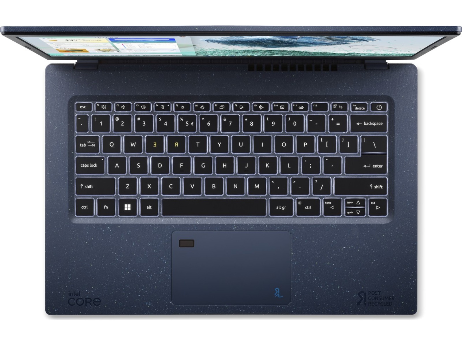 Markerede R- og E-taster styrker opfordringen til at reducere, genbruge og genanvende. Farverne på Aspire Veor minder om verden omkring os, og gengiver den naturlige skønhed ved alt det, vi forsøger at beskytte.