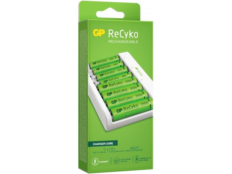 - 4 x AA 2100mAh + 4 x AAA 850mAh NiMH-batterier inkluderet