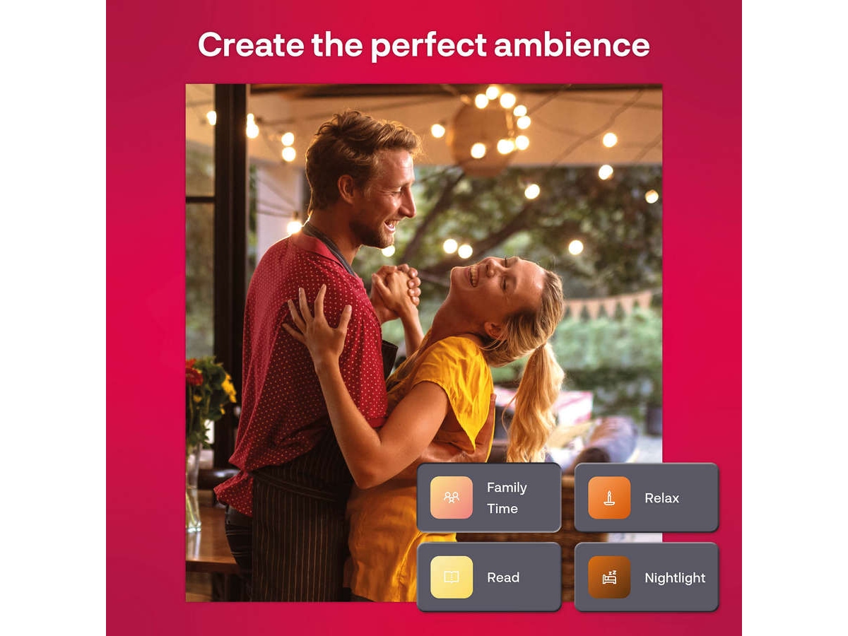 Takket være glassets gyldne belægning skaber de smarte glødepærer en behagelig hyggelig atmosfære. Den trendy vintagepære kan også dæmpes, hvis du ønsker mere stemning.