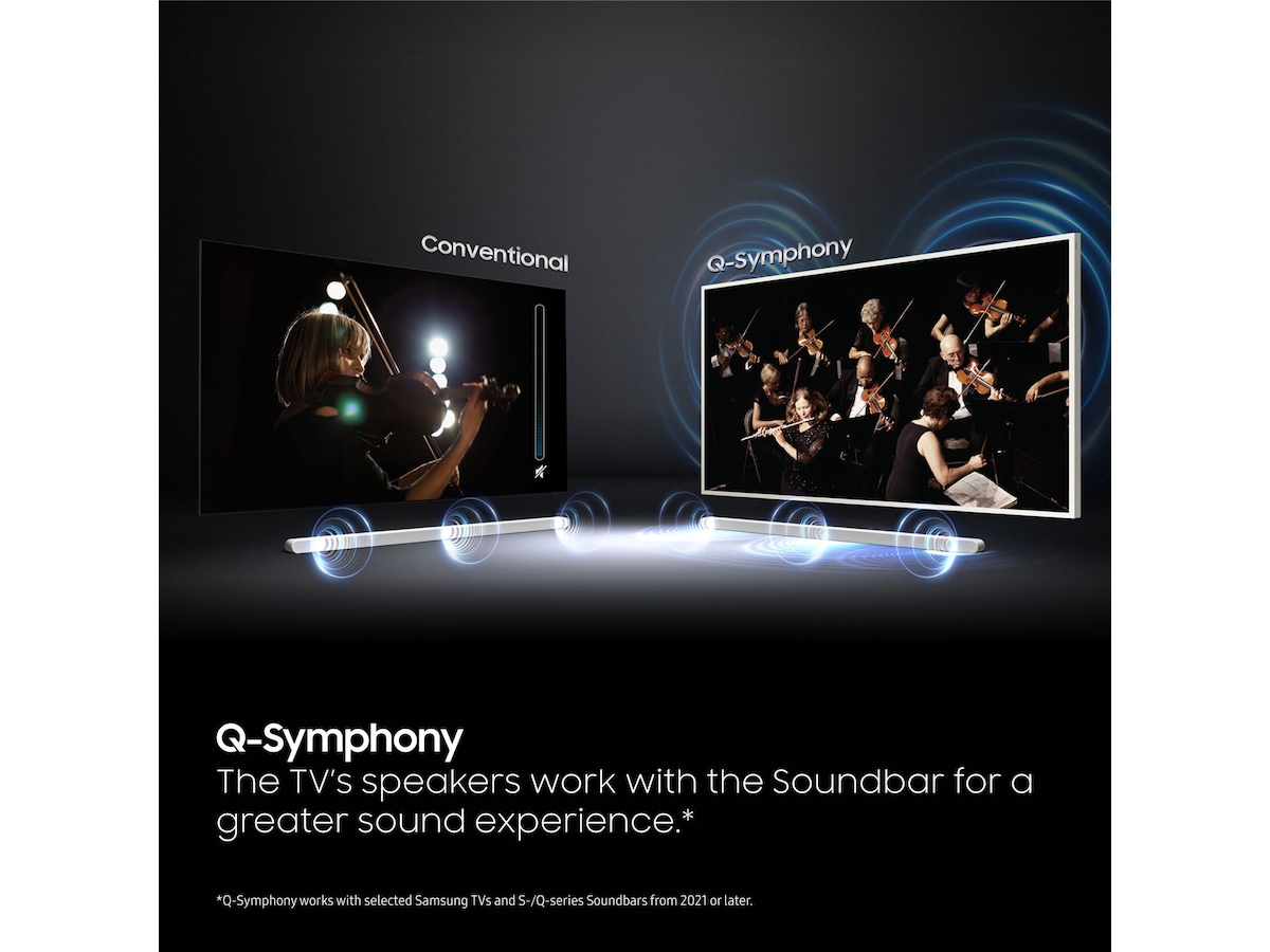 - TV’ets højttalere samarbejder med din Soundbar om at skabe en større lydoplevelse.
