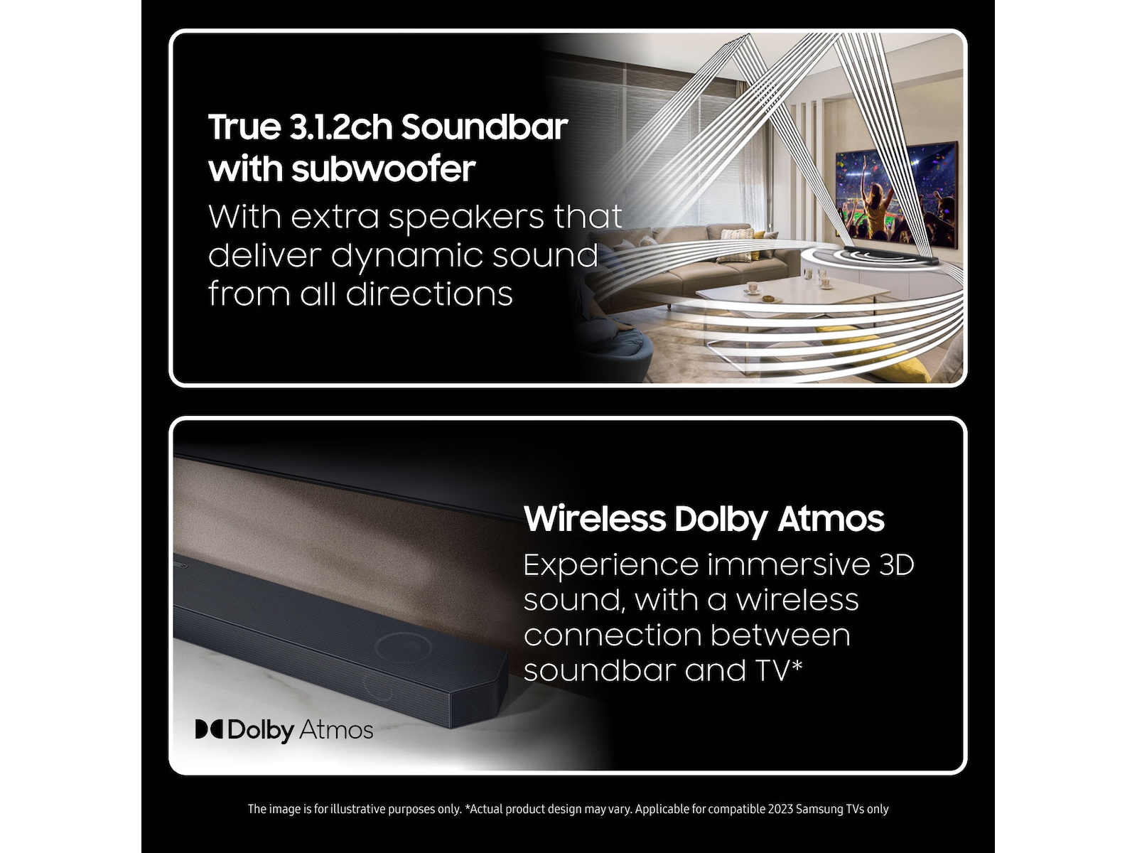 • Oplev altomsluttende tredimensionel lyd, nu med trådløs forbindelse mellem TV og Soundbar.