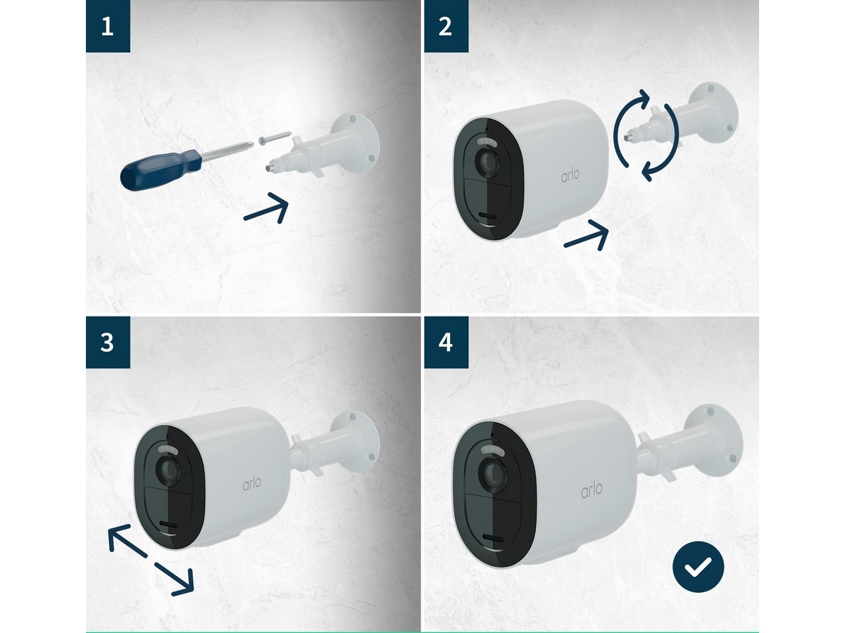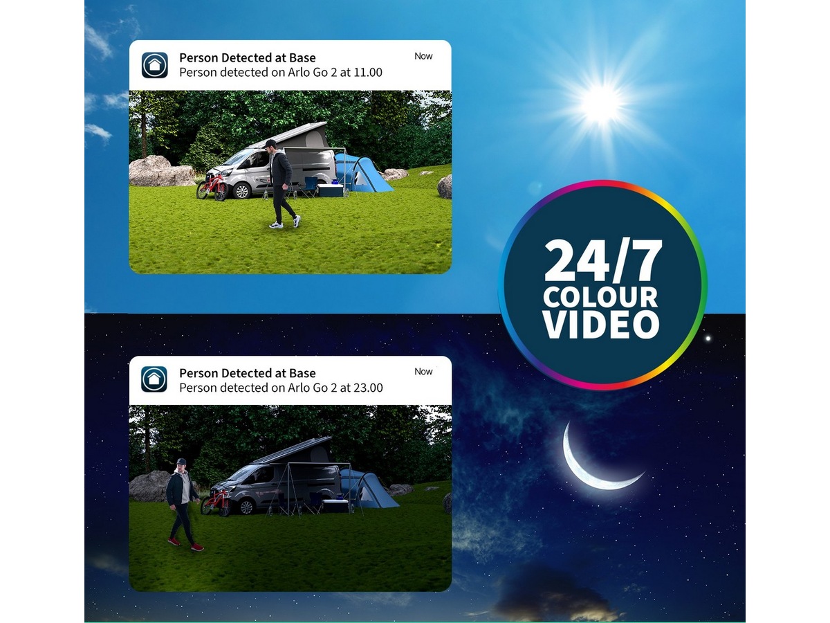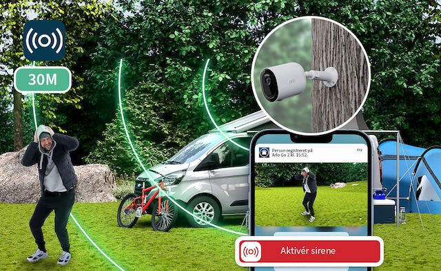 Tilslut overalt med et 3G/4G SIM-kort, og få 1080p live videostreaming. Eller vælg et Arlo Secure-abonnement for at gemme dine videoklip i skyen, og få adgang når som helst via biblioteket i appen. Få advarsler, når der registreres bevægelse, og hvis du ser en potentiel trussel, kan du fjernaktivere den indbyggede sirene eller spotlightet for at skræmme dem væk.