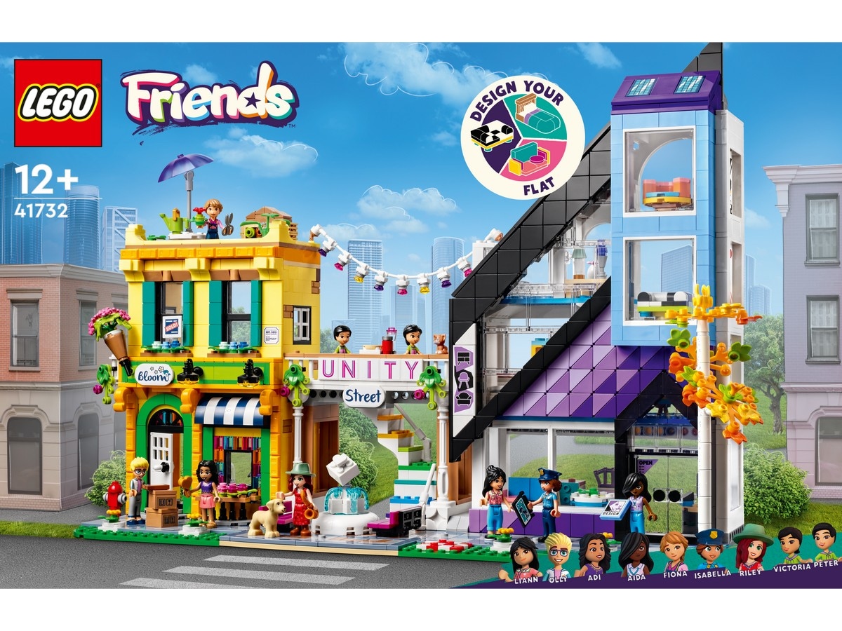 Kreative sjæle fra 12 år kan bygge, indrette og udstille en detaljeret LEGO® Friends lejlighed med sættet Midtbyens blomster- og designbutikker.