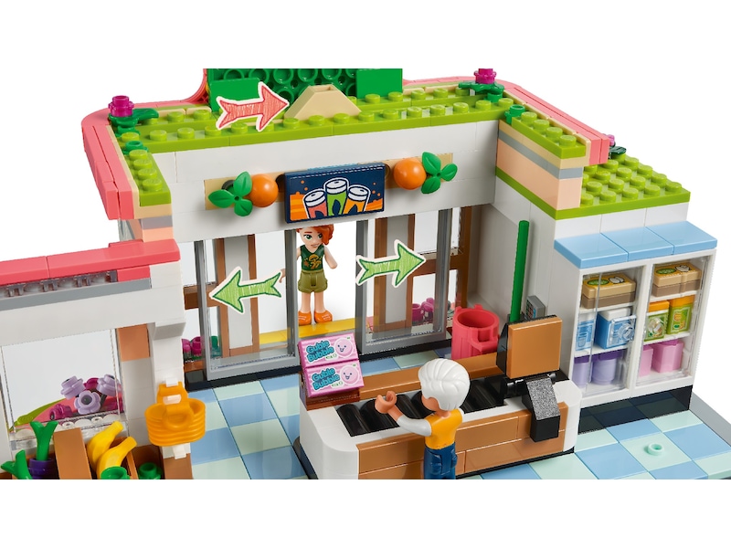 Inspirer til kreativ rolleleg i supermarkedet for børn fra 8 år med LEGO® Friends sættet Økologisk købmandsbutik (41729). Det er fyldt med tilbehør til dagligvarebutikken, som børn kan bruge til at udforske figurernes interesser. Autumn brænder for at hjælpe planeten, så hun elsker at besøge den økologiske shop. Her møder hun sin ven Leo, der er vild med at lave mad og afprøve nye opskrifter. Børn vil nyde at finde funktioner fra virkelige forretninger, såsom skydedøre, indkøbsvogne, genbrugsbeholder og varevogn. Sættet indeholder 4 minidukker samt figurer af lillesøsteren Alba og katten Churro. Inspirer unge byggere Børn kan nyde et nemt og intuitivt byggeeventyr med LEGO Builder appen, hvor de kan zoome ind på og dreje modeller i 3D, gemme sæt og holde styr på, hvor langt de er kommet. Velkommen til Heartlakes næste generation Børn kan få venner, opdage spændende steder og udspille virkelige eventyr i LEGO Friends universet.