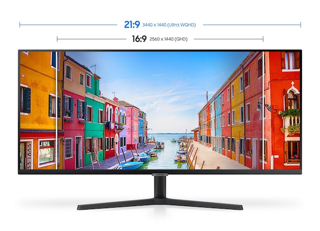 Se mere på samme skærm. Uanset om du arbejder med et projekt eller slapper af med en film, kan du se hver eneste detalje på den brede skærm med aspektforholdet 21:9. Ultra-WQHD er den letteste måde at maksimere skærmoverfladen på og opleve fuldstændig ukompliceret multitasking på en enkelt skærm.