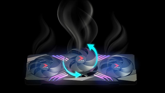 Lavet med runde blæsere med 3 x 100 mm dobbelte kuglelejer. Sammenlignet med traditionelle 90 mm blæsere, byder de på 40% mere luftstrøm og vinder 55% lufttryk. Derudover konvergerer det runde ventilatorblad luften for at forbedre den termiske ydeevne.