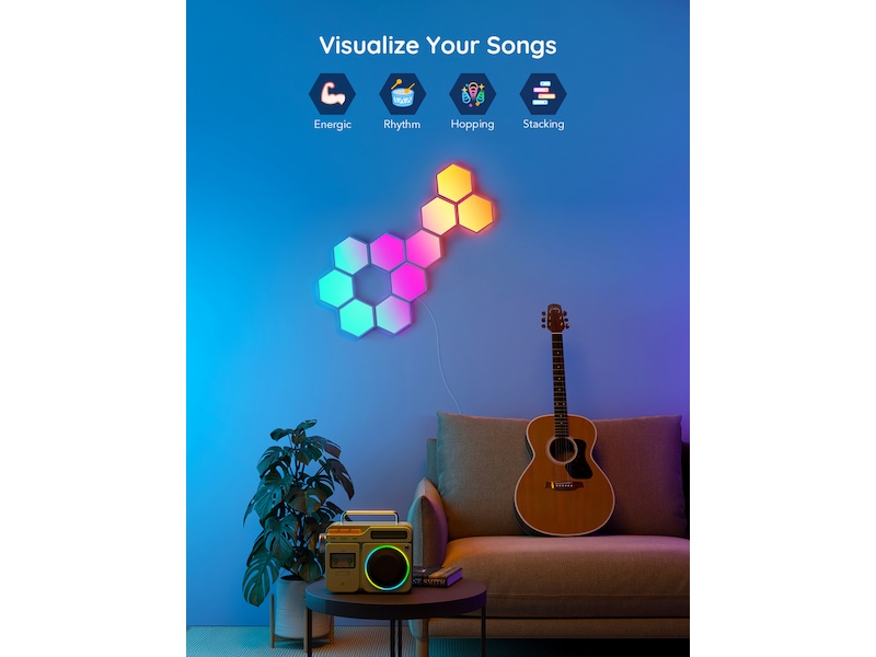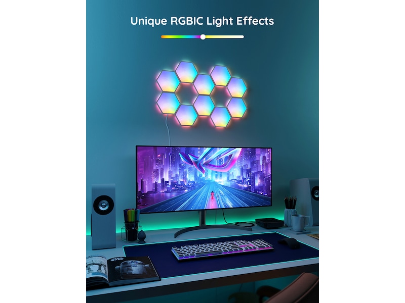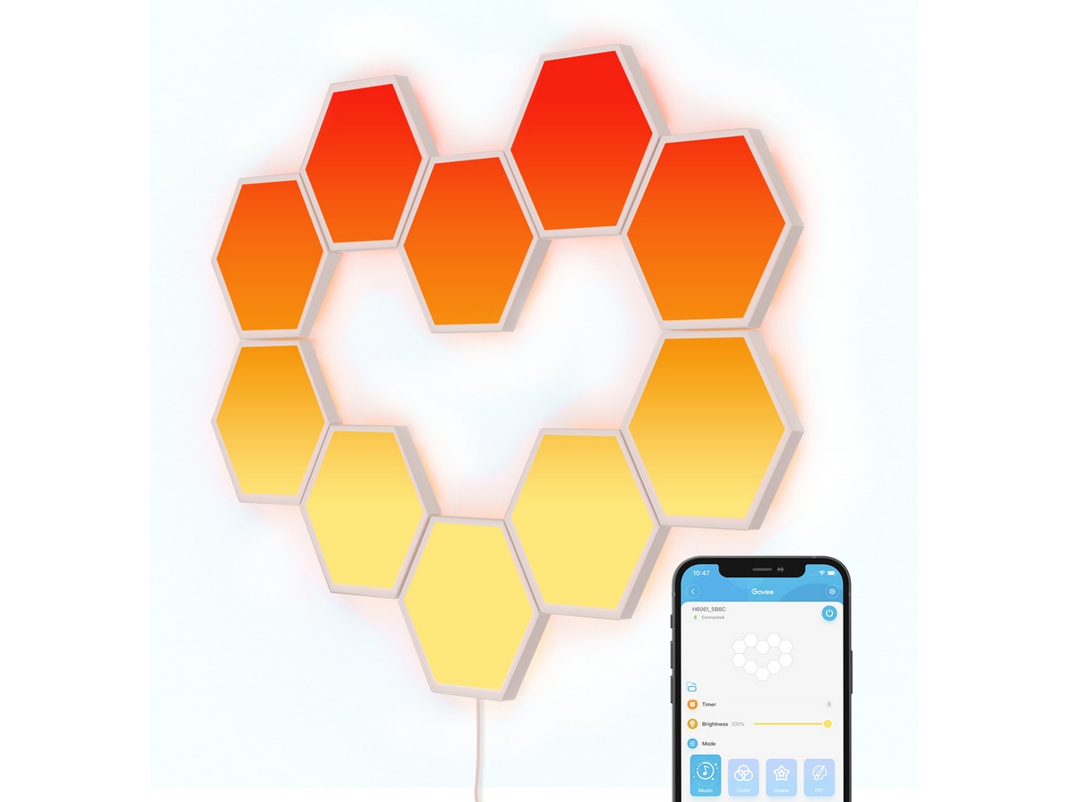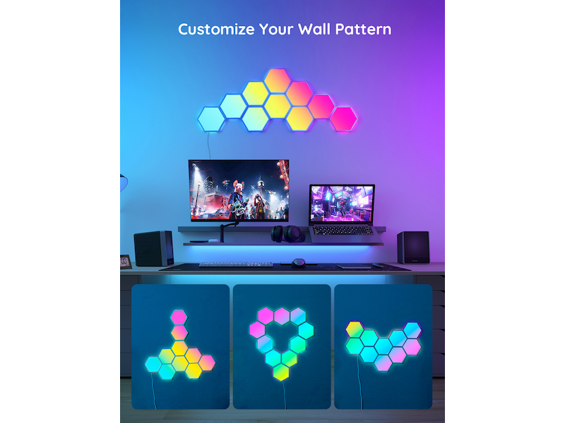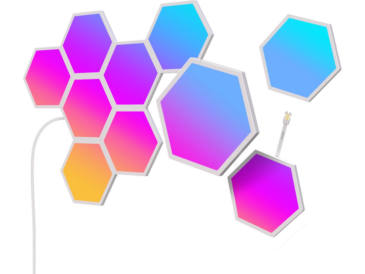 Govee Glide Hexa Light Panels er sammensat af 10 paneler, der kan blandes i forskellige former.
