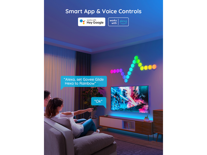 De kan styres ved hjælp af dine foretrukne stemmeassistenter såsom Alexa og Google Assistant samt Govee Home-appen. Du kan endda tilpasse dit design, effekter, farver og mere.