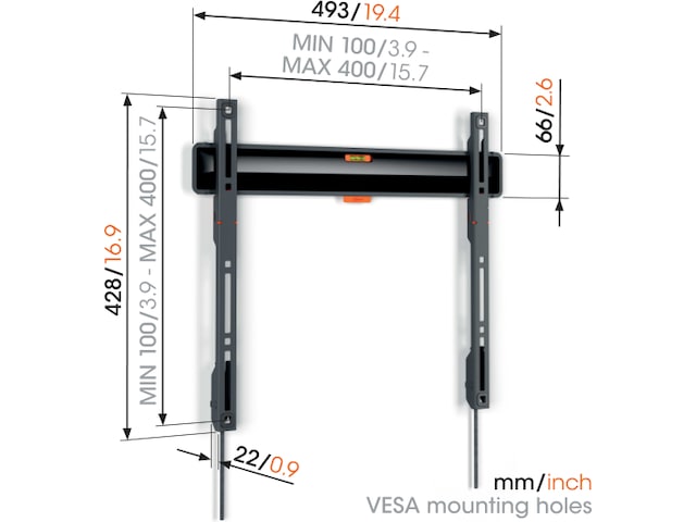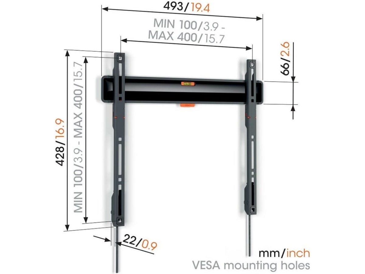 Kunne du tænke dig at montere dit fladskærms-TV stilfuldt og sikkert på væggen? Med dette faste COMFORT TV-vægbeslag vælger du design og sikkerhed. Vægbeslaget er velegnet til montering af TV'er fra 32 til 77 tommer og vejer op til 50 kg fladt mod væggen. Afstanden mellem TV'et og væggen er kun 2,2 cm. Det faste COMFORT TV-vægbeslag kan ikke drejes eller vippes. Så hvis du altid sidder direkte foran dit TV, er dette det perfekte vægbeslag til dig.