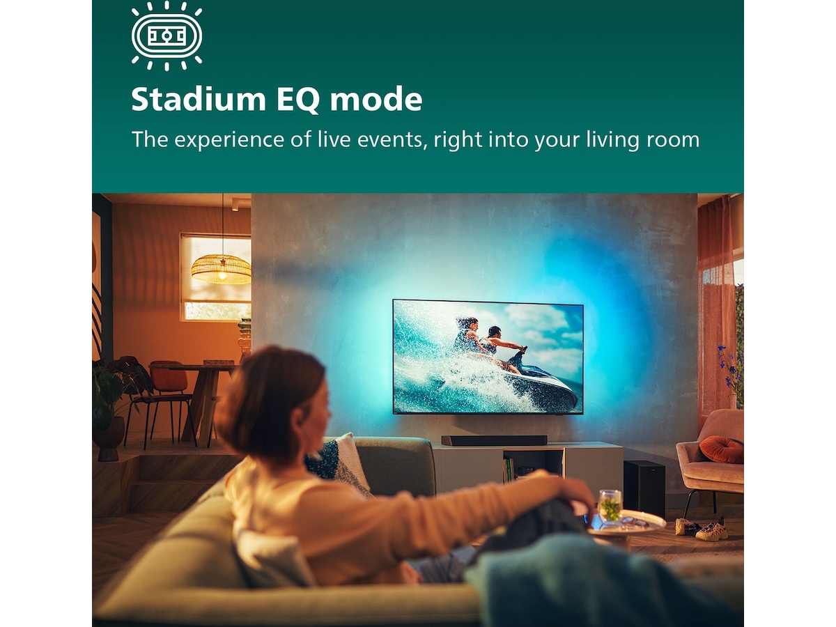 Vælg en af fire forudindstillede EQ-tilstande for at forbedre din oplevelse. Stadium EQ-tilstanden giver dig mulighed for at fordybe dig i mængden, ligesom hvis du sad på stadion! Bliv begejstret for hvert afgørende øjeblik, og hør stadig krystalklare kommentarer.