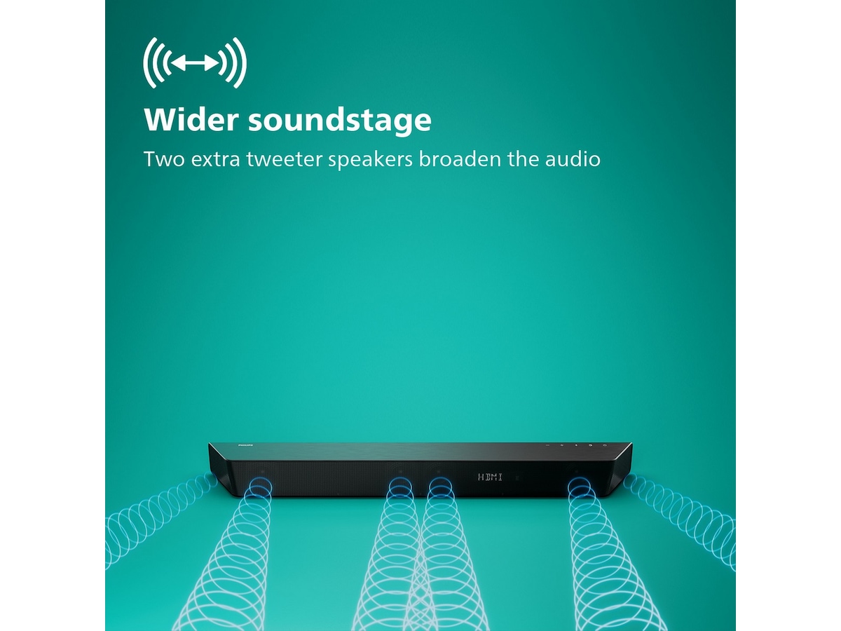 Udvid lyden! To ekstra diskanthøjttalere i hver ende af soundbaren udvider lydbilledet for at give dig en endnu rigere oplevelse. Udvid lyden og finjuster detaljerne, så du kan nyde musik og film som aldrig før.