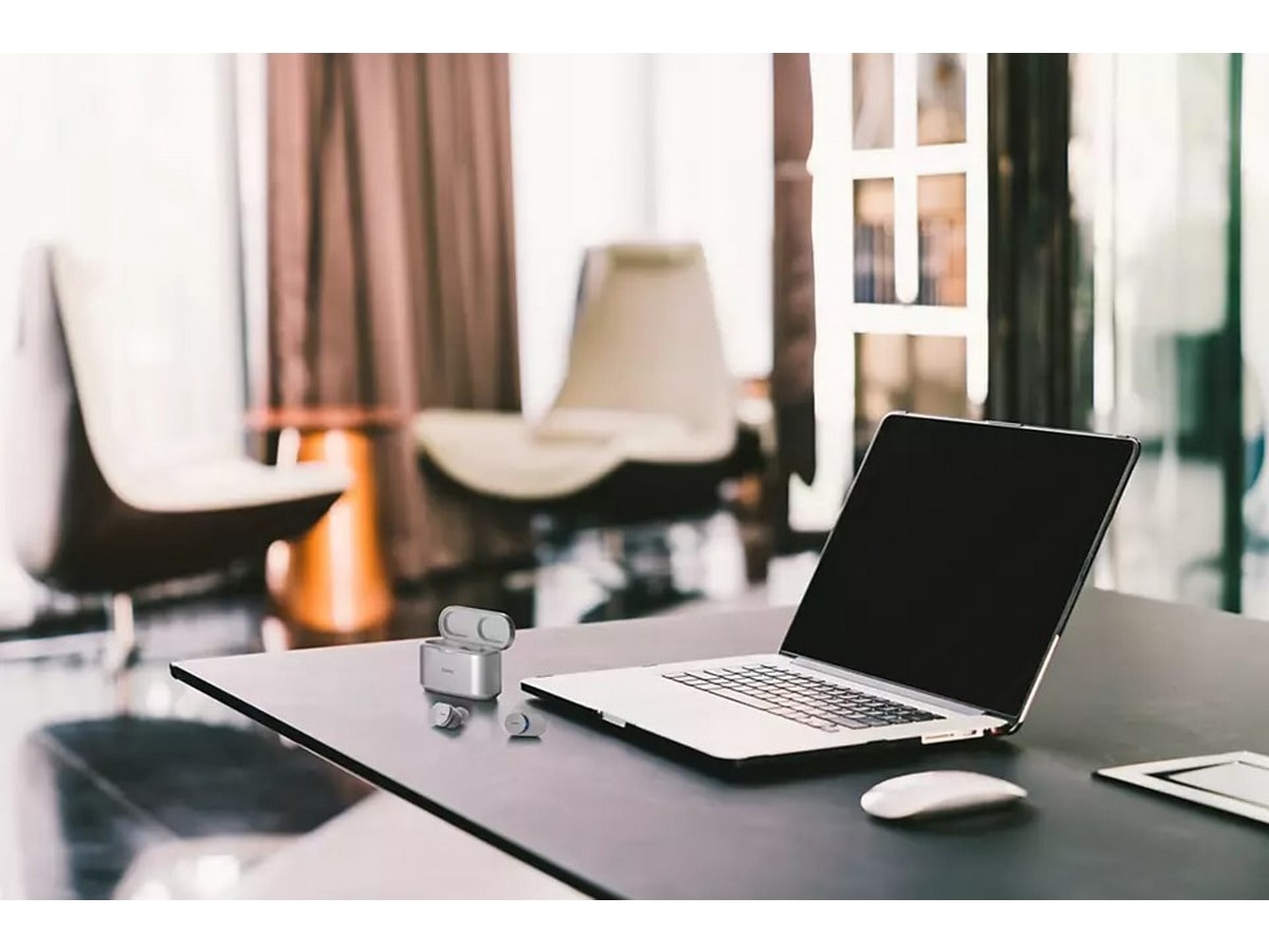 Med fuldt opladede ørepropper og et fuldt opladet etui kan du tage afsted med over en dags afspilningstid i lommen. Derudover stopper musikken midlertidigt, hvis du fjerner en øreprop, så du aldrig går glip af en eneste tone. Etuiet kan oplades trådløst.
