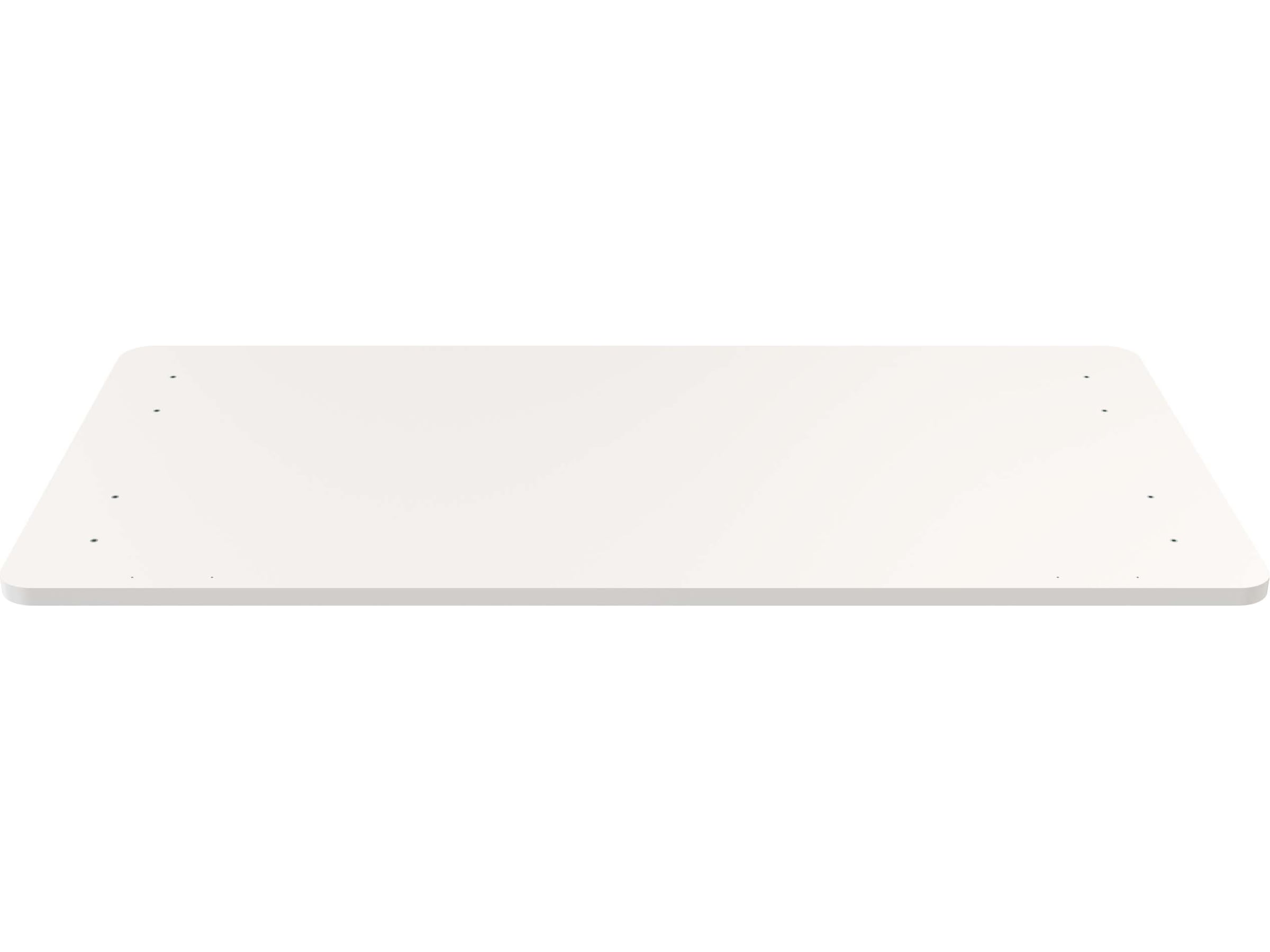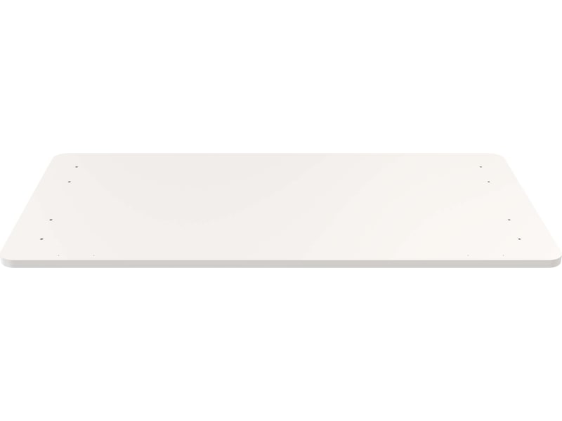 Bordplade med afrundede kanter og forborede skruehuller. Bordpladen er lavet af spånplade og har en lamineret overflade, der gør pladen slidstærk og nem at holde ren.