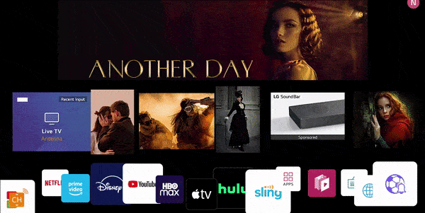 Internet Streaming Services Netflix, HBO Max, NVIDIA GeForce NOW, Apple TV+, LG Channels, AI Home Dashboard, Disney+, Prime Video