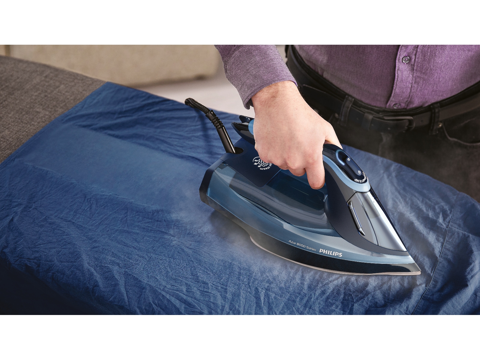 Stryg problemfrit med vores nye Philips Azur 8000-serie. Kom i gang på ingen tid med 3000 W, der giver hurtig opvarmning og kraftfuld ydeevne. Vores OptipalTEMP-teknologi garanterer, at der ikke sker forbrændinger på noget strygbart stof, så du kan tage det helt roligt.