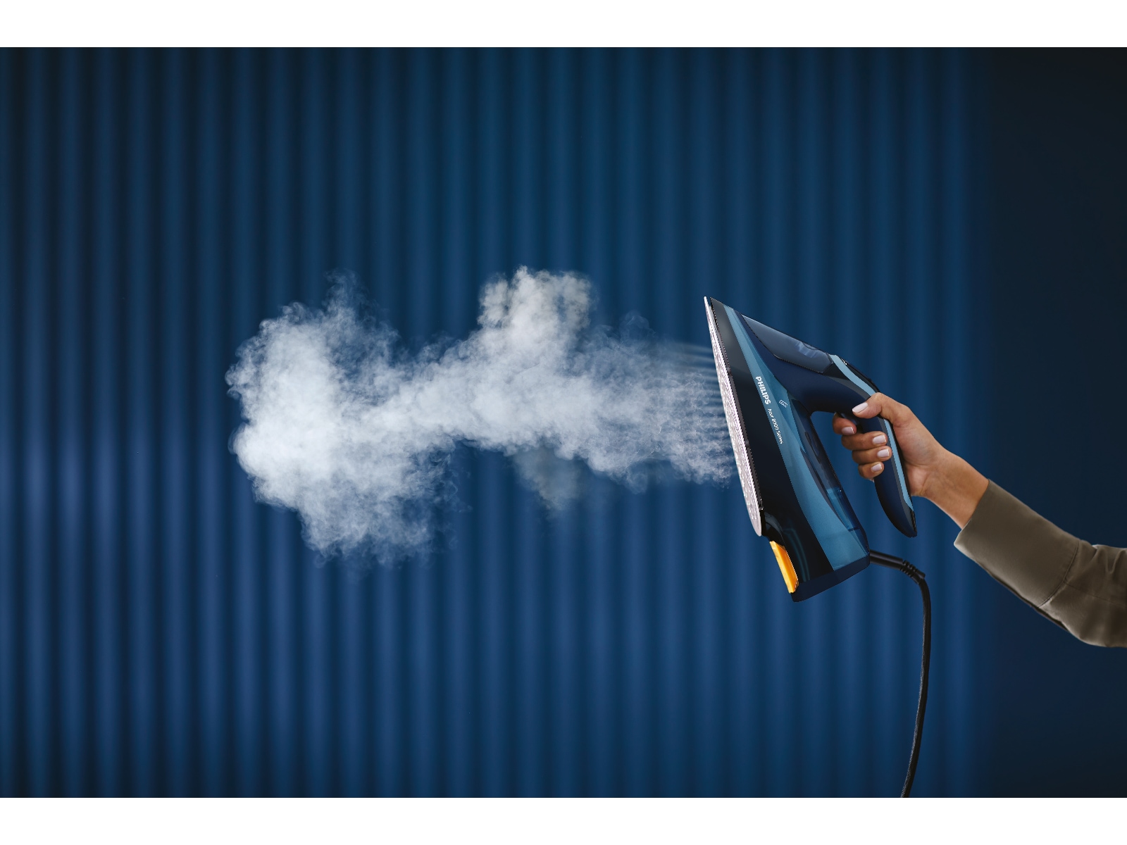 Med en konstant dampproduktion på 45 g/min lader du aldrig strygejernet glide over tøjet forgæves, så det går hurtigere at fjerne folderne.