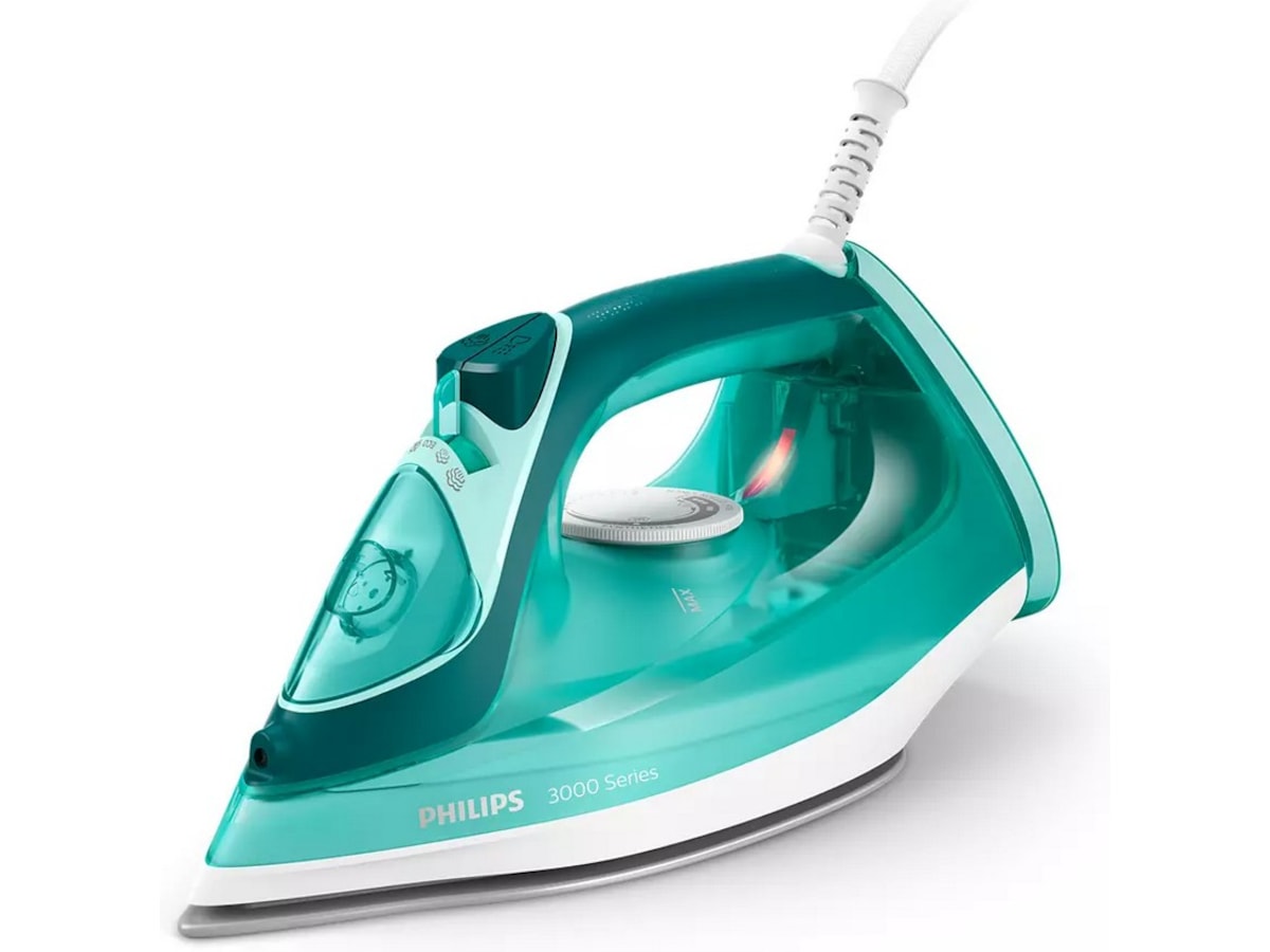 Vores dampstrygejern i 3000-serien gør strygningen nem med det kraftige dampskud, der klarer vanskelige folder. Den keramiske strygesål sikrer, at det glider nemt, mens vandtanken på 300 ml er stor nok til at færdiggøre mindre mængder strygetøj uden genopfyldning.