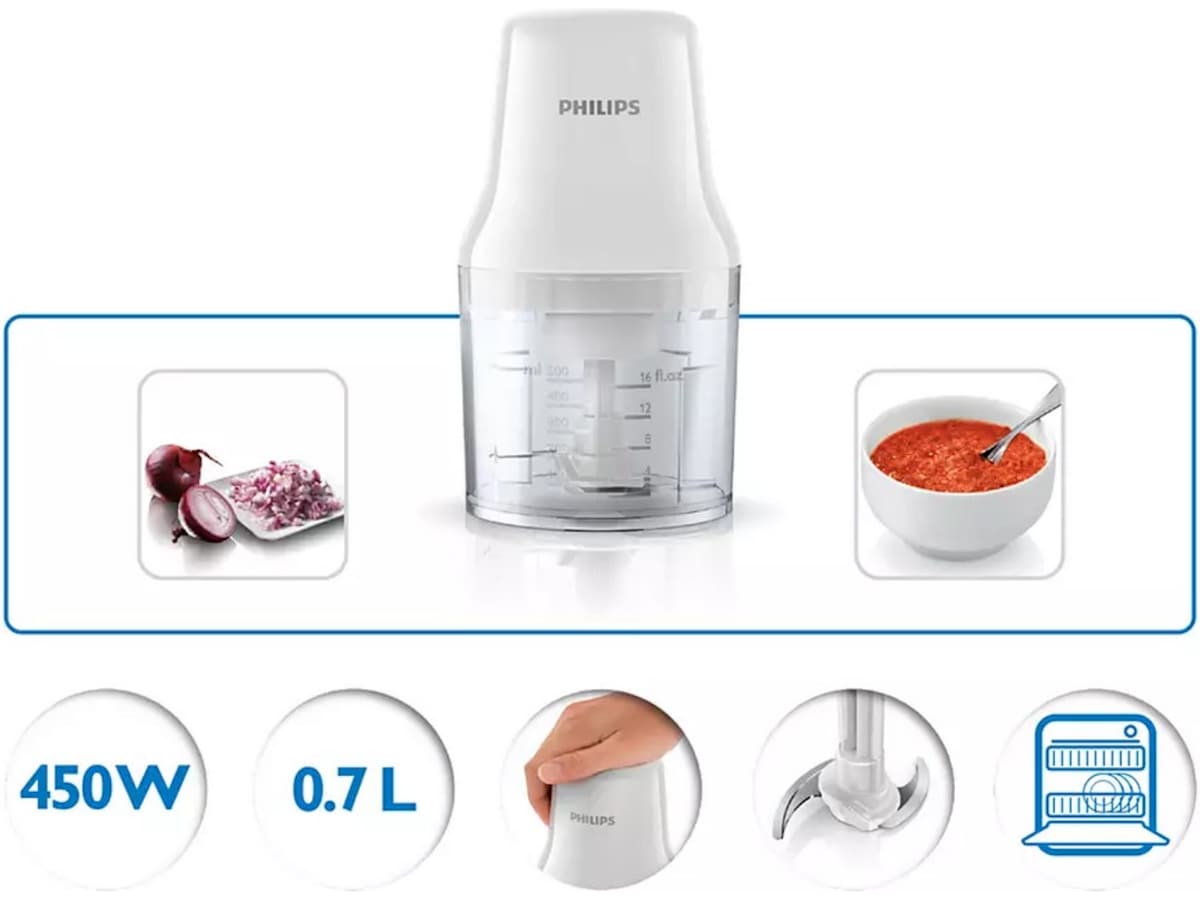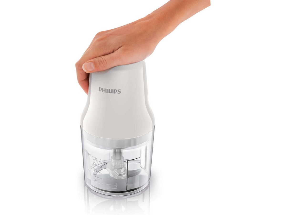 En hjælpende hånd i køkkenet. Den kan hakke alt, hvad du ønsker - grøntsager, urter, nødder osv. på få sekunder. Det har aldrig været nemmere takket være "tryk ned"-betjeningen og det kompakte design.
