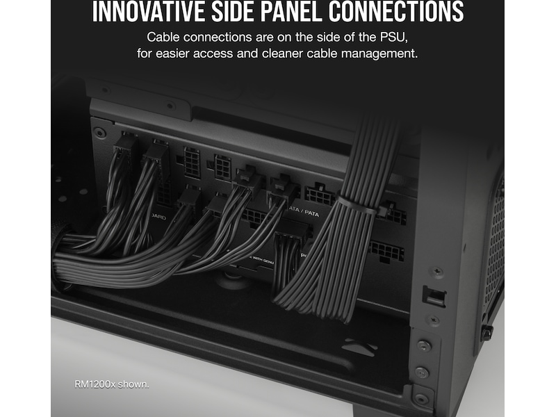 Et innovativt, patentanmeldt PSU-panel på siden med modulære forbindelser lader dig nemt tilslutte kabler på sidefladen af din PSU, hvilket gør det nemmere end nogensinde før at tilslutte og holde styr på dine kabler.