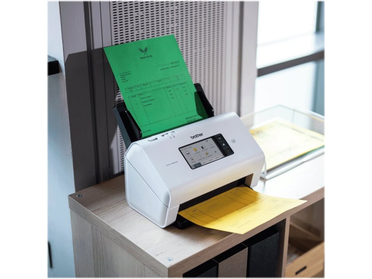 | Scanneregenskaber | Skipper blanke sider, Automatic Separation, Long Document Scanning, 10,9 cm farveberøringsskærm, Remove Background, Autobilledrotation, One-Touch button, Wi-Fi Direct, Automatisk detektion af sidestørrelse, Auto Deskew |