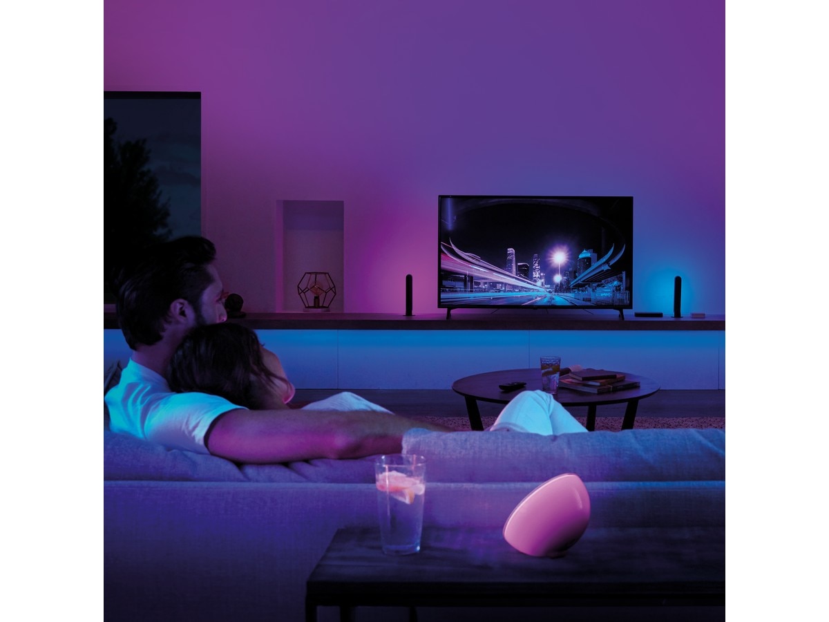 Du kan med fordel tilføje en Hue Bridge og kombinere lampen med Hue Sync softwaren, der synkroniserer belysningen med dine medieenheder. På denne måde skabes et spektakulært, reaktivt lysshow, der reagerer på indholdet på din skærm i realtid og åbner op for en helt ny dimension af hjemmeunderholdning. Strømforsyning medfølger.