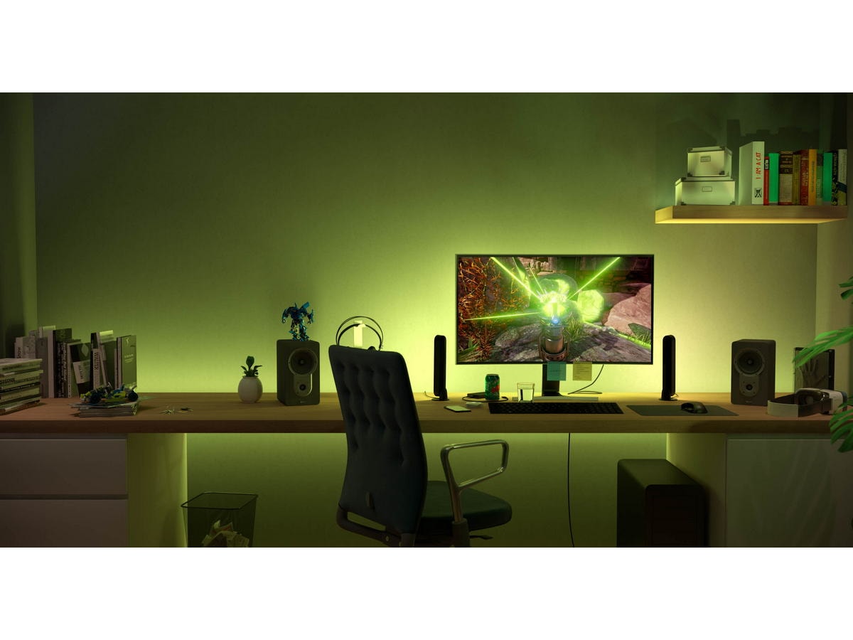 Brug den i dit TV-område, ved dit gaming setup og i alle hjemmets rum for at skabe farverige lyseffekter, der løfter enhver underholdningsoplevelse til nye højder. Den slanke lampe kan både stå op og monteres enten på væggen eller bag på dit TV eller din computerskærm.