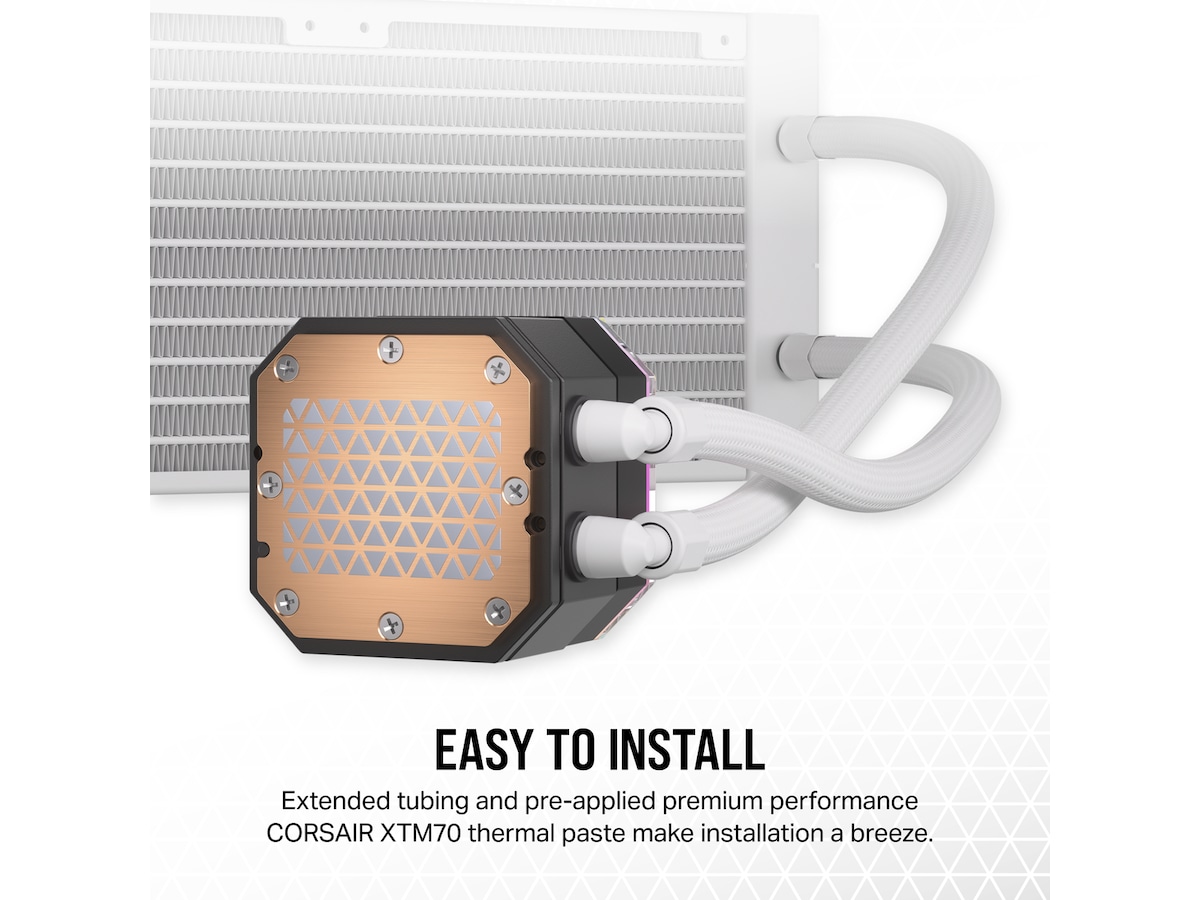 Alle ELITE CAPELLIX XT AIO'er inkluderer på forhånd påført CORSAIR XTM70 Extreme Performance termisk pasta for maksimal varmeoverførsel fra din avancerede processor til den køligere kolde plade.
