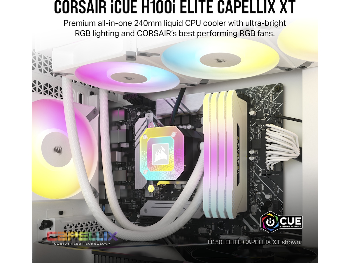 Alt-i-én væskekølere afleder ikke processorvarme inde i kabinettet som traditionelle luftkølere, men guider det i stedet til kanten af kabinettet og blæser det ud med dedikerede blæsere. Dette resulterer i køligere komponenter og mindre støj. ELITE CAPELLIX XT er en opgradering til vores mest kraftfulde CPU-køler: