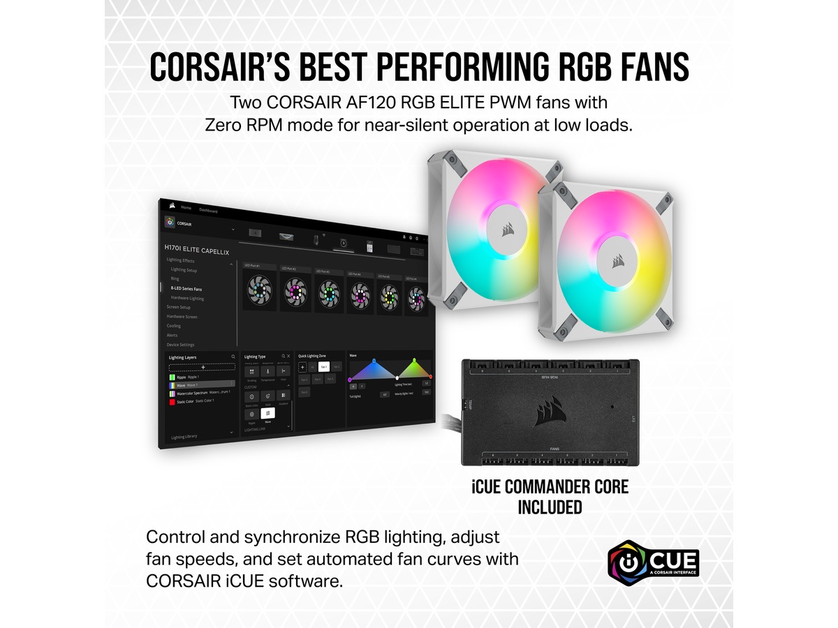 CORSAIR AF RGB ELITE PWM-blæsere leverer massiv luftstrøm med lavt støjniveau med AirGuide-teknologi til ekstrem CPU-køling.