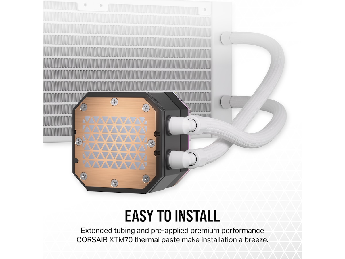 Alle ELITE CAPELLIX XT AIO'er inkluderer på forhånd påført CORSAIR XTM70 Extreme Performance termisk pasta for maksimal varmeoverførsel fra din avancerede processor til den køligere kolde plade.