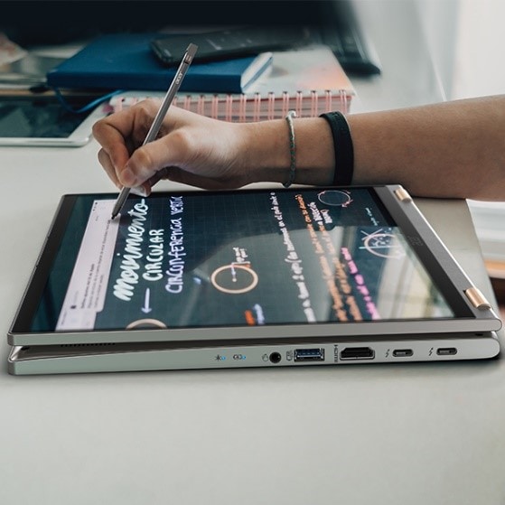 Gør din innovation bærbar med en 14 tommers Acer Spin 5 med understøttelse af stylus-pen. Designet med en fantastisk 2560x1600 skærm og drevet af den seneste 12. generations Intel ® Core™ i5-processorer for en ægte Intel ® Evo™-oplevelse.