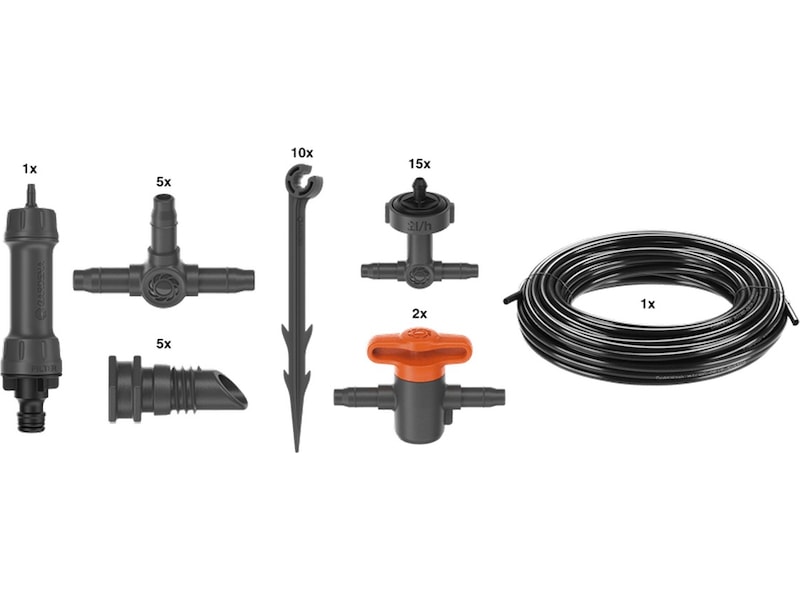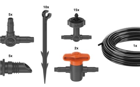 Sættet er klar til øjeblikkelig brug, da det indeholder alle de komponenter, du skal bruge til at vande op til 15 altanplanter.