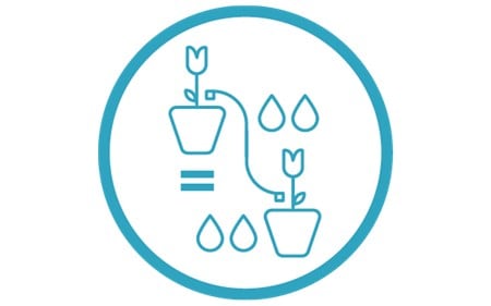 Sættet er velegnet til vandbesparende drypvanding af i alt 15 potteplanter med forskelligt vandbehov på terrassen – både til potteplanter og rækker af planter i kummer eller baljer.