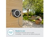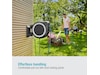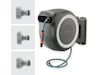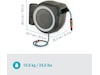 Takket være det praktiske vægbeslag kan slangeboksen svinges i en vinkel på 180°. Dette giver dig mulighed for at vande hvert hjørne af din have fleksibelt og uden at bøje slangen. Efter brug kan den kompakte boks skubbes til siden på væggen for at spare plads.